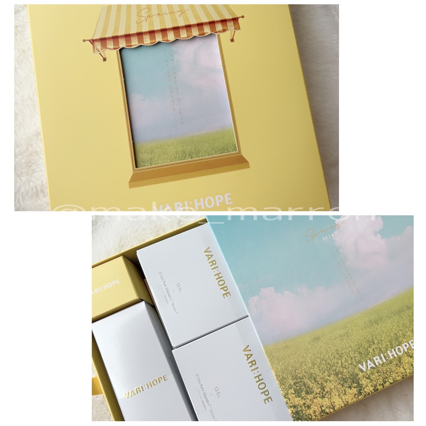 かわいすぎるビタミンC特化ギフトセットがベリーホップから登場! コスメオタクがこぞって絶賛してるVARI:HOPE (ベリーホップ)のギフトセットが今季も出た〜! トナーはしゃばしゃばでもなくとろとろでもなく、ベタベタしないけどしっとり。美容液もゆるめのテクスチャで手持ちのアンプルの中ではさっぱりな使用感。