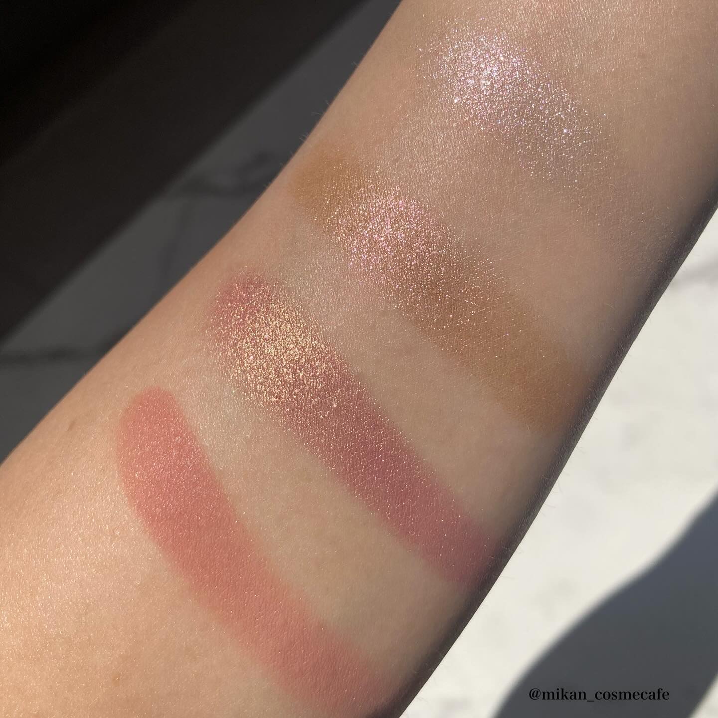 元々NARSのオーガズムはイエベ春に合うと聞いていたので、今回買ってしまいました🥰 コーラルカラーにゴールドパールがぎっしり細かく入っていて、美しい!ツヤっとしてハイライト要らず!! 指で腕にぬるとキラキラすぎるように見えますが、ブラシでフワッとのせると、そんなにラメギラギラという感じもなく、でもツヤっとも見せてくれて可愛い!!!!