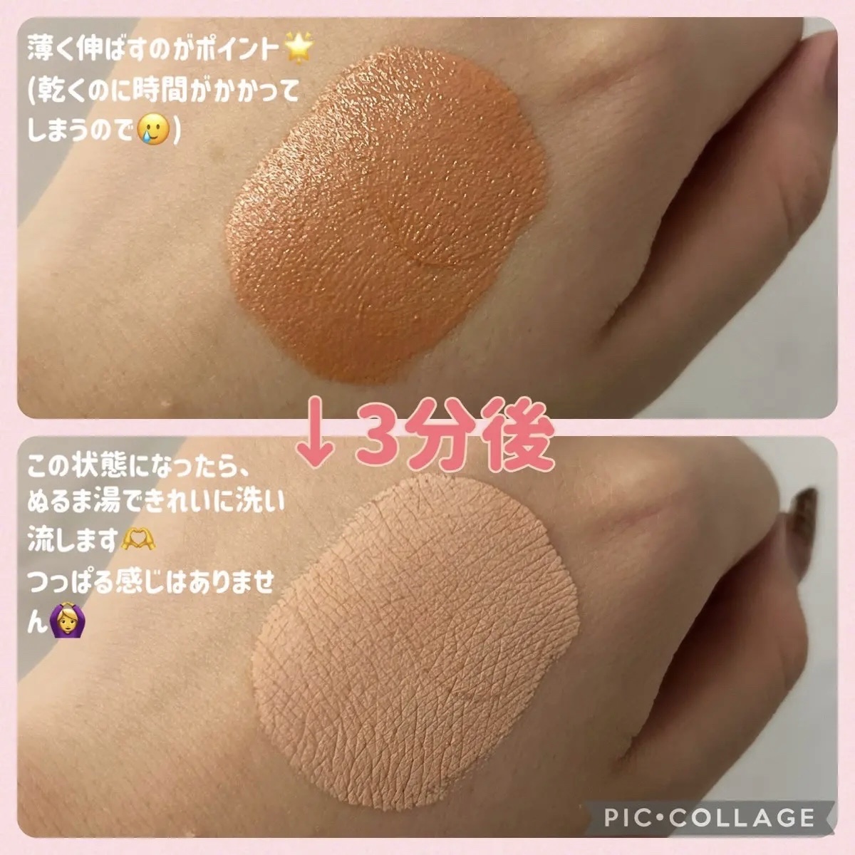 みずみずしく、かなりのびが良いです!! トーンアップ効果もあり、塗るとお肌がパーっと明るくなります💫 のびが良く、しっかり密着してくれます!! カバー力がありつつも素肌感があり、良い意味でファンデーションを塗った感じがあまりしないです👀 小鼻など細かい部分にもフィットしやすい形で、水を含ませるとふんわりモチモチになります!! マーブル柄も可愛いです😆