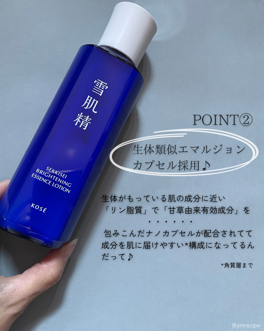 美白×肌荒れ防止W効能 甘草由来成分でシミ予防も、肌荒れも同時にケア みずみずしい透明美肌へと導く薬用美白化粧水✨ ナチュラルフローラルの爽やかで澄んだ香り 深呼吸したくなるくらいお気に入り 愛され続けて40年 今回薬用雪肌精初めてのリニューアルだそうです!