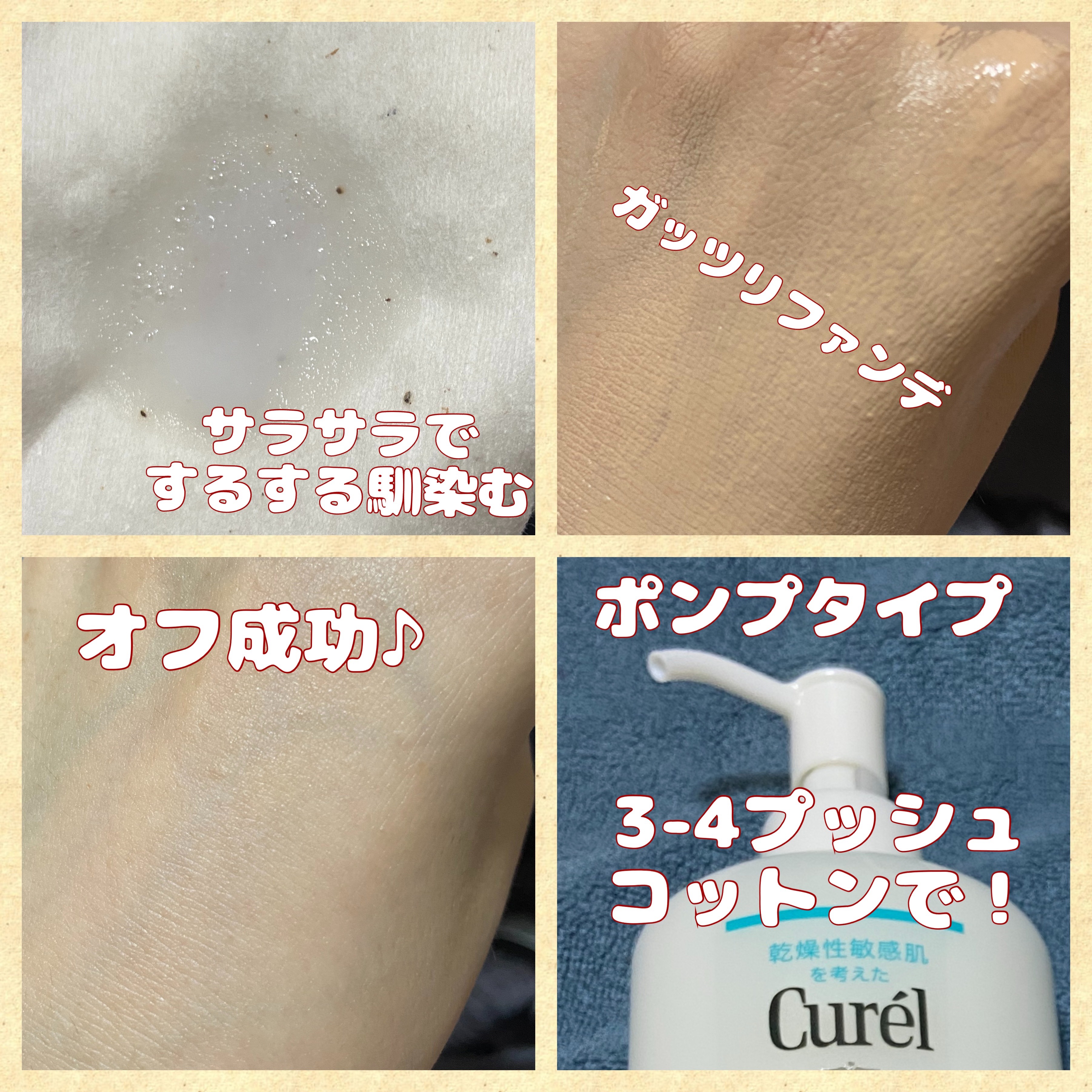 【使った商品】キュレル潤浸保湿乳液ケアメイク落とし【商品の特徴】①毛穴の約1/1,000サイズのセラミドケアオイルをIN。乳液が肌のすみずみまで行き渡り、メイクやちり・花粉等の汚れを落とします。②潤い成分配合。角層まで深く潤し、保湿まで完了。...