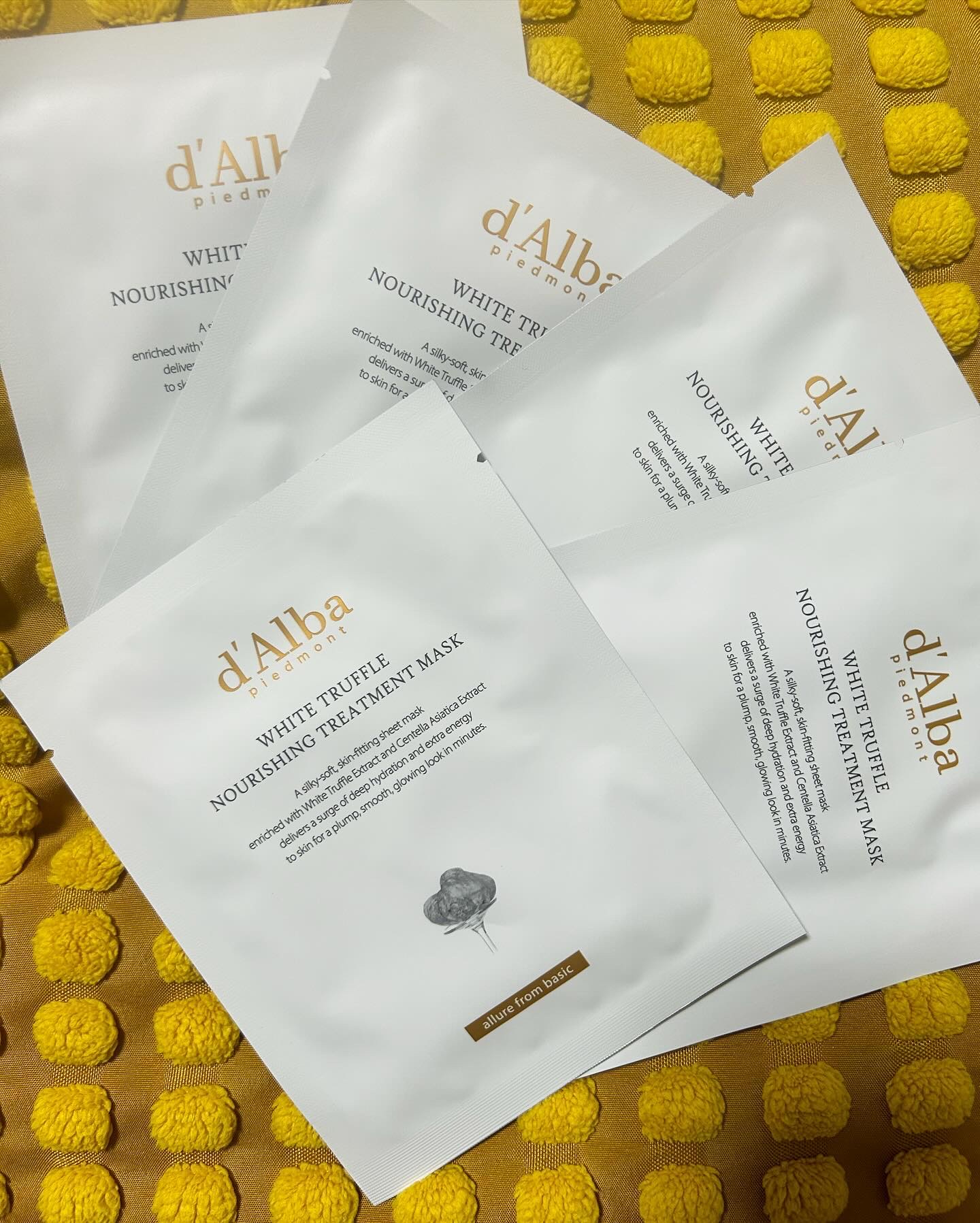 韓国の人気コスメブランド ダルバ(d'Alba)。スキンケアからメイクアップまで多彩なラインナップですが、中でも人気が高い「ファーストスプレーセラム」。私も何本もリピートしています。 しっとり優しい肌触りのシートマスクで、ぴたっと肌に密着してくれます。美容液がたっぷり含まれています。 イタリア産ホワイトトリュフ*が肌に水分を供給し肌を整え、ざらついて乾燥の気になる肌をなめらかでツヤのある肌に導きます。