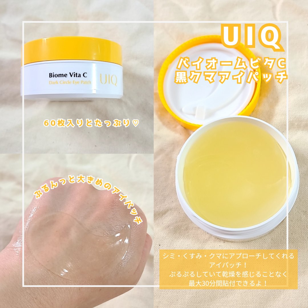 UIQバイオームビタC黒クマアイパッチ目元の乾燥やクマが気になる方におすすめのUIQ「バイオームビタC黒クマアイパッチ」エッセンスハイドロゲルパッチはエッセンスを1本分含んでいて、ぷるぷる!!ビタミンC誘導体やナイアシンアミド(*)が配合され...