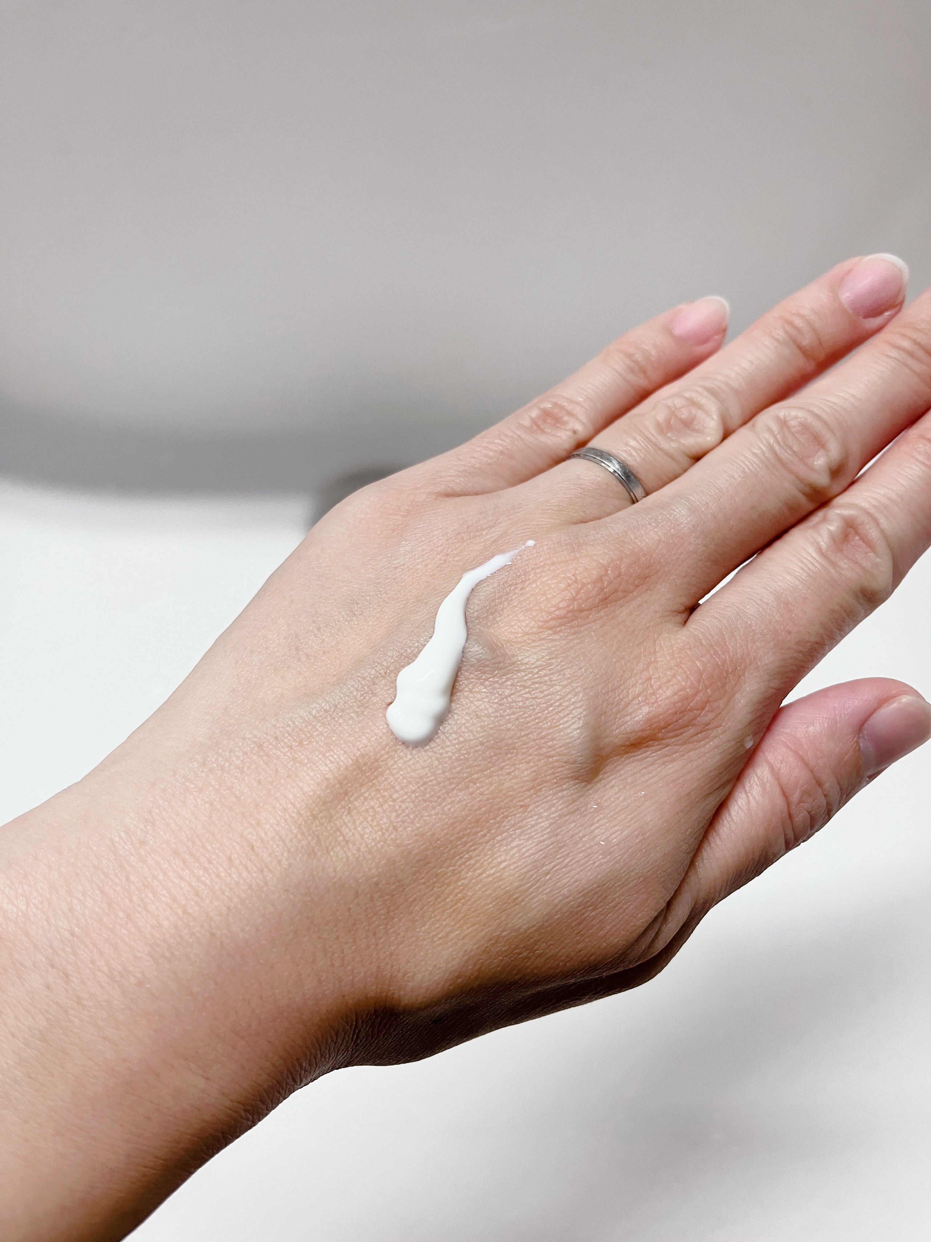 乳液やハンドクリームのような質感でみずみずしいです 成分的には鎮静効果や保湿も期待できるみたいなので この時期のエアコンによる乾燥や肌荒れも 予防出来そうで期待大です^ ^ 顔には日焼け止めも良いものを使いたいので 今日からは乗り換えようと思っています笑