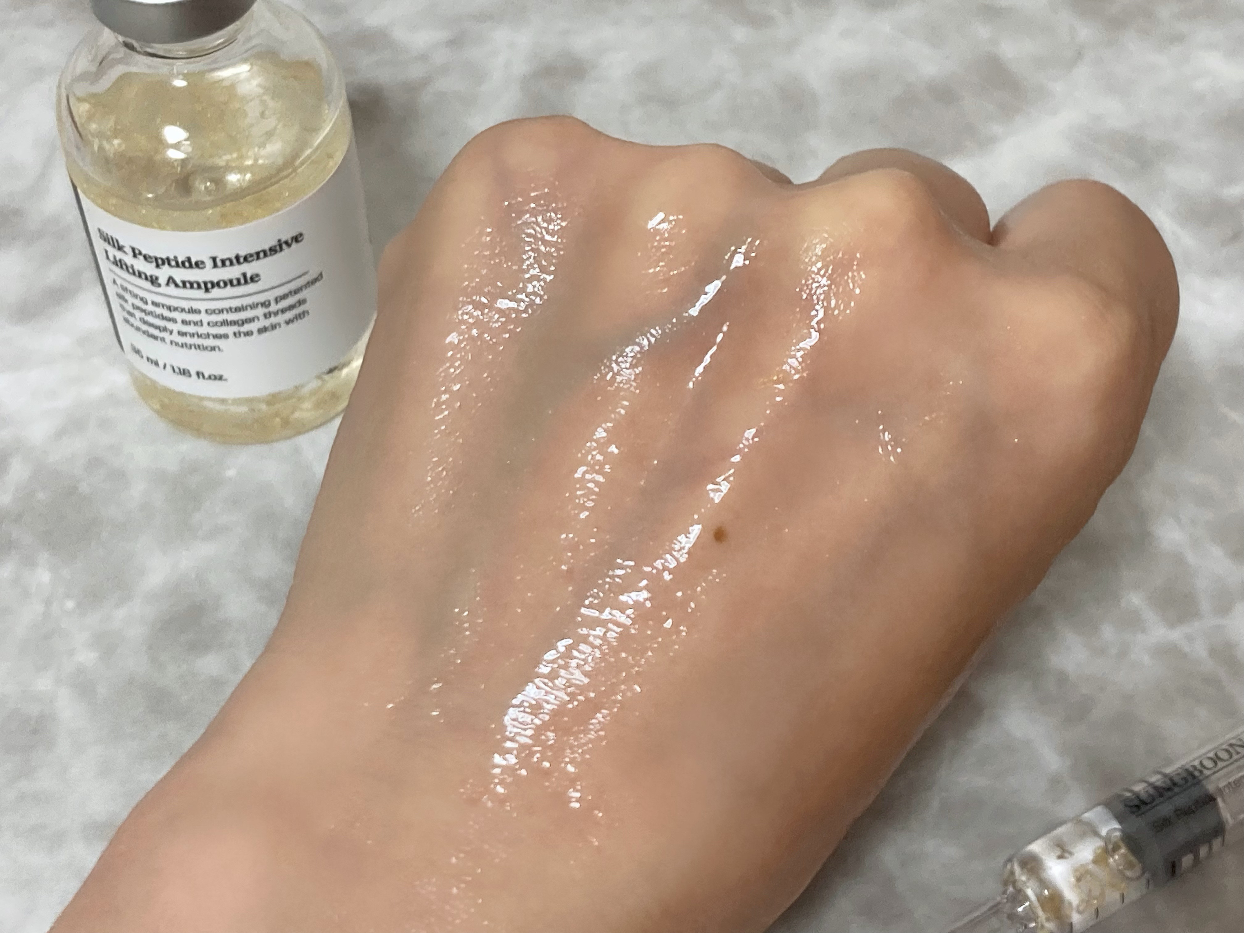 まるで塗る糸リフト?と言われるシルクペプチドアンプル🤍以前ハローキューティーで試した時から見た目が注射器なのが印象的でずっと気になってました👀✨ 高濃度シルク成分にペプチド13種や金色のコラーゲン糸を配合し、注射器で吸い上げて使うのが新感覚でとっても楽しいよ🥺🫶 とろみのあるみずみずしいテクスチャーで使った後にはしっとりもちもちなお肌に◎
