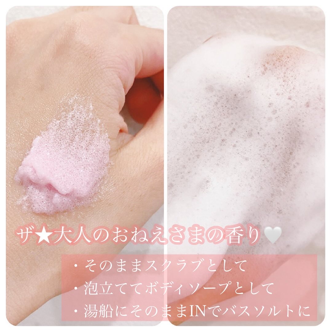 - 美容をもっとカジュアルに“AGARISM”とカワイイの欲望を知り尽くした雑誌sweetとのコラボ商品!女性のボディを魅力的にする重要なパーツ「お尻」。古い角質による黒ずみやザラツキ・乾燥ニキビ*などをケア。角質が気になるところにはスクラブとして、気になるデリケートゾーンは泡立てて全身ボディソープとしてOK。バスソルトとしても使える3WAYボディスクラブです。香りもやみつきになるフェロモンな香りにうっとりします! *洗浄によりニキビを防ぐ
