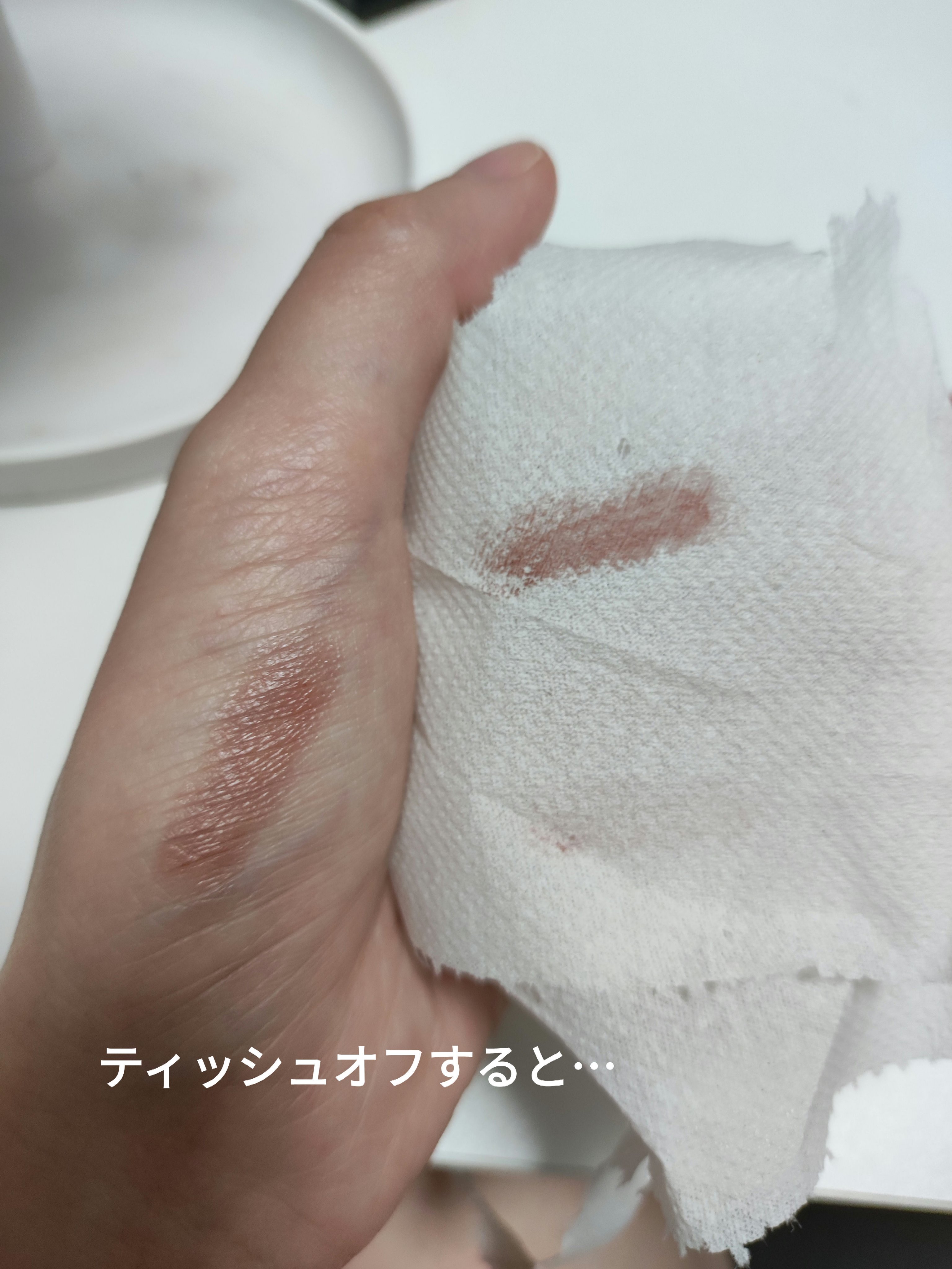 逆にリップの色が落ちてしまう現象発生。 私には使いこなせなかったです… 使い方が悪かったかもですが、ティントタイプを塗って伸ばした後、ムラなく伸ばすとどんどん剥がれてしまいます。 細かいパールがキラキラするのは可愛いですが… スティックタイプもティッシュオフした後に重ねても、同じように膜と一緒に剥がれて、ぐじゃぐじゃになってしまいました…