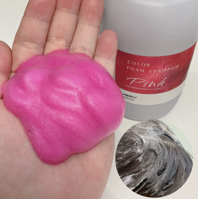 エブリカラーフォームシャンプー→泡立て不要な泡タイプ カラーフォームシャンプー。泡タイプのため、泡が髪全体をムラなく包み込んでくれます。ヘアカラーやブリーチなどのダメージにお悩みの方にもチェックしてみてほしい→今回使ったのは<ピンク>。出てく...