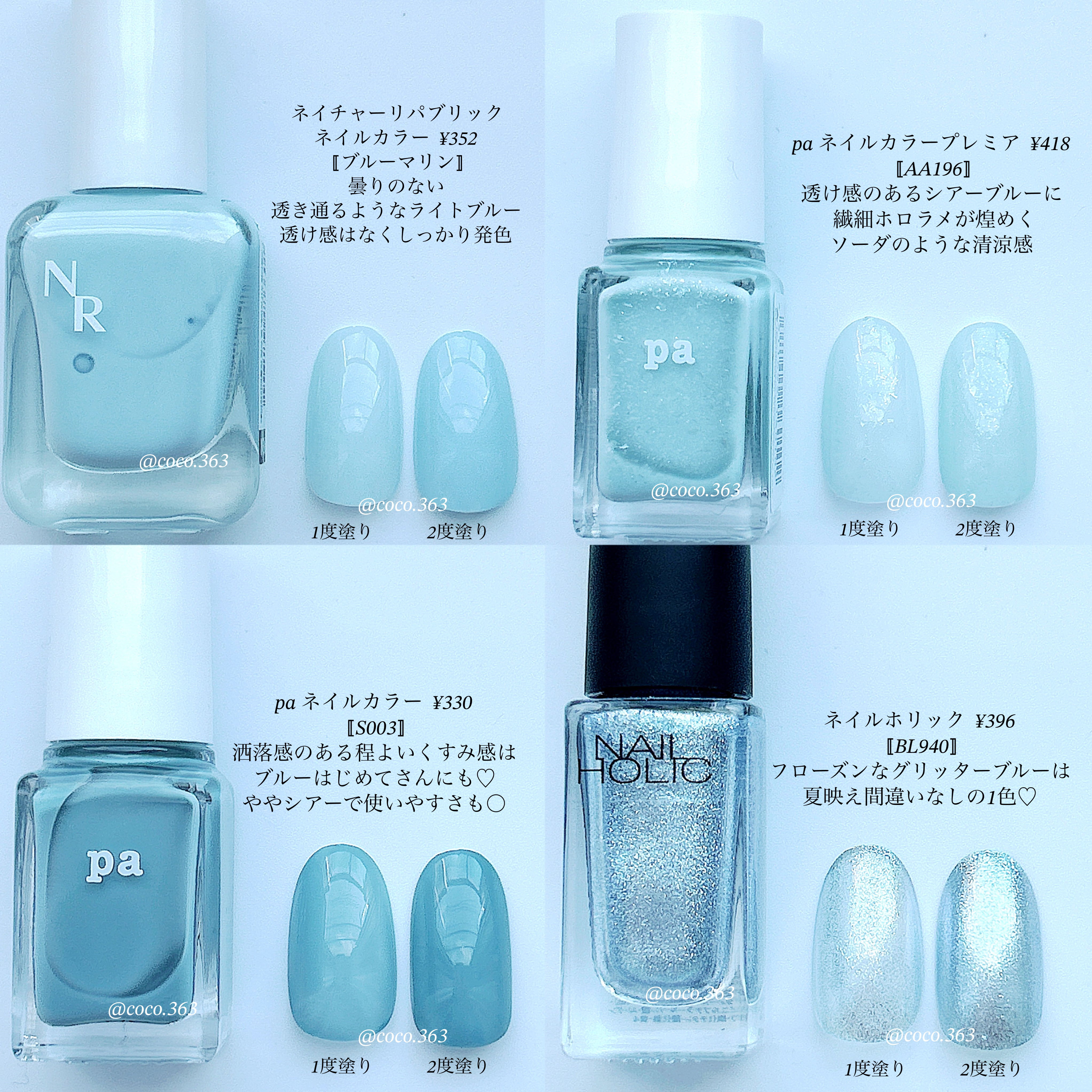夏にぴったりな透け感水色ネイル4選◡̈夏はついつい水色のマニキュアを選びがち!透明感のあるマニキュアを塗るだけで、なんか涼しげな雰囲気になりませんか?😳今回は手持ちカラーの中で1000円以下で買える透け感水色マニキュアを紹介します♡皆さんは何...