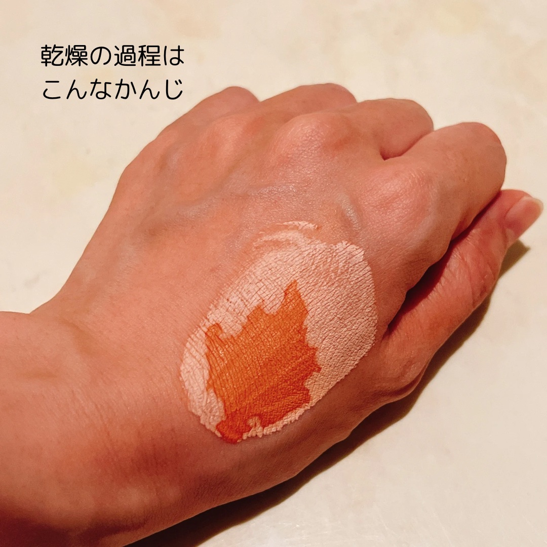 ビタミンE、アプリコットカーネルオイル、グレープシードオイルが乾燥した唇を保湿してくれるティントです。 04はオレンジという名前がついてますが、朱色っぽさを感じます。イエベ秋の私にとっては使いやすい色です。 香りはどちらもピーチのような甘い香りがします。
