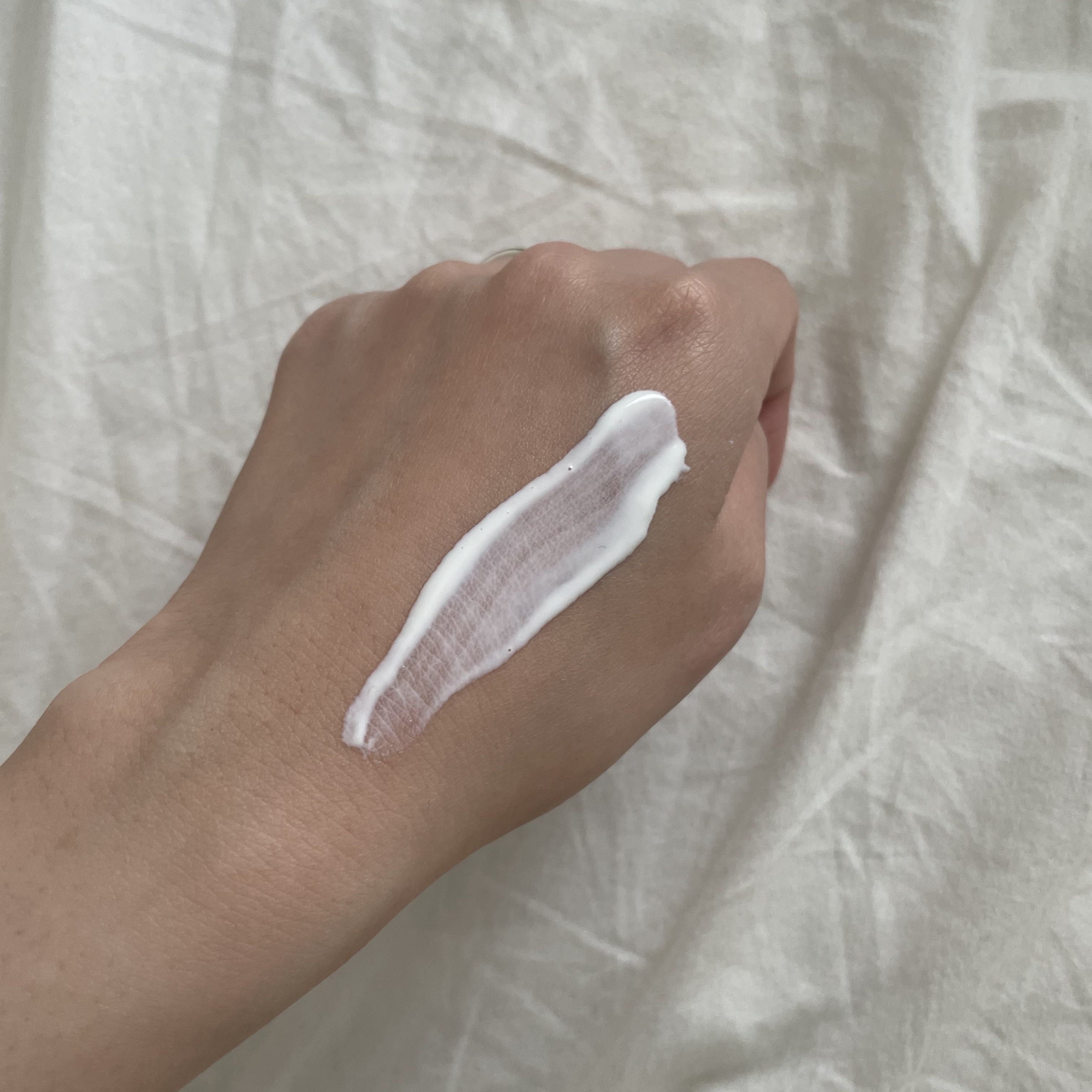 初めは柔らかいクリーム状。伸ばすとセラムの様なすごく軽い付け心地だった。しかもベタつかないから塗り心地がもう最高。 乾燥した肌にも水分チャージしてくれるらしいし、敏感肌の方でも使いやすい!お肌に優しい🥹♡