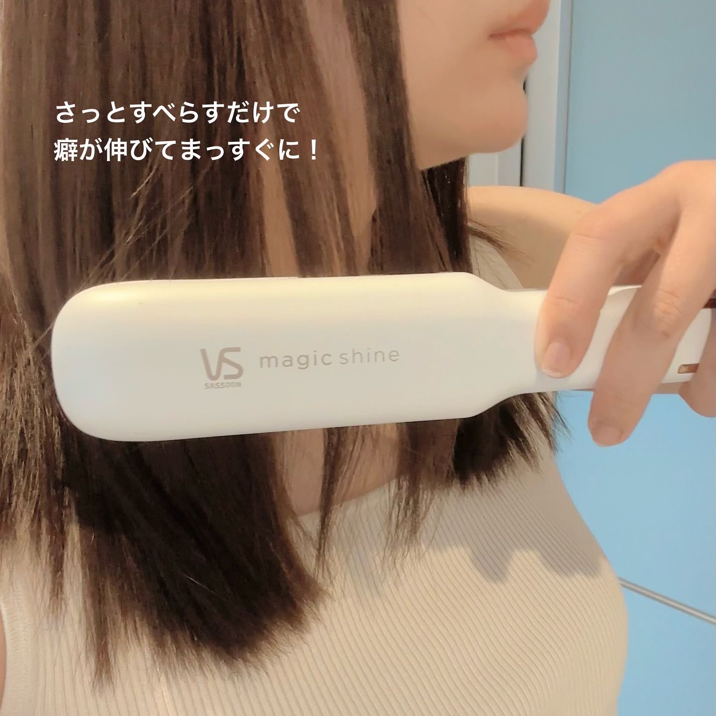 - ■特長 ・ヴィダルサスーン史上最大スチーム量(※1)でうるツヤストレートへ。 ・シャイニーミラーコーティング採用。しなやかでツヤのある髪へ導く。 ・最高温度約220℃の高温設定。約140~220℃までの5段階温度調節可能。(※2) ・大量の高温スチームで、ストレートが24時間続きます。(※3) (※1)当社調べ、2023年9月時点 (※2)周囲温度30℃の場合 (※3)【試験方法】うねりのある毛髪を選別し、毛束を作成。処理前の毛束全長を測定し、キューティクルの流れにそって毛先方向に4~5秒の速さで5回滑らせた後、24時間後に毛束全長を測定。(第三者機関調べ)〇VSS-9920同等性能品による測定。【測定環境】室温20℃±5℃、相対湿度60%±10%