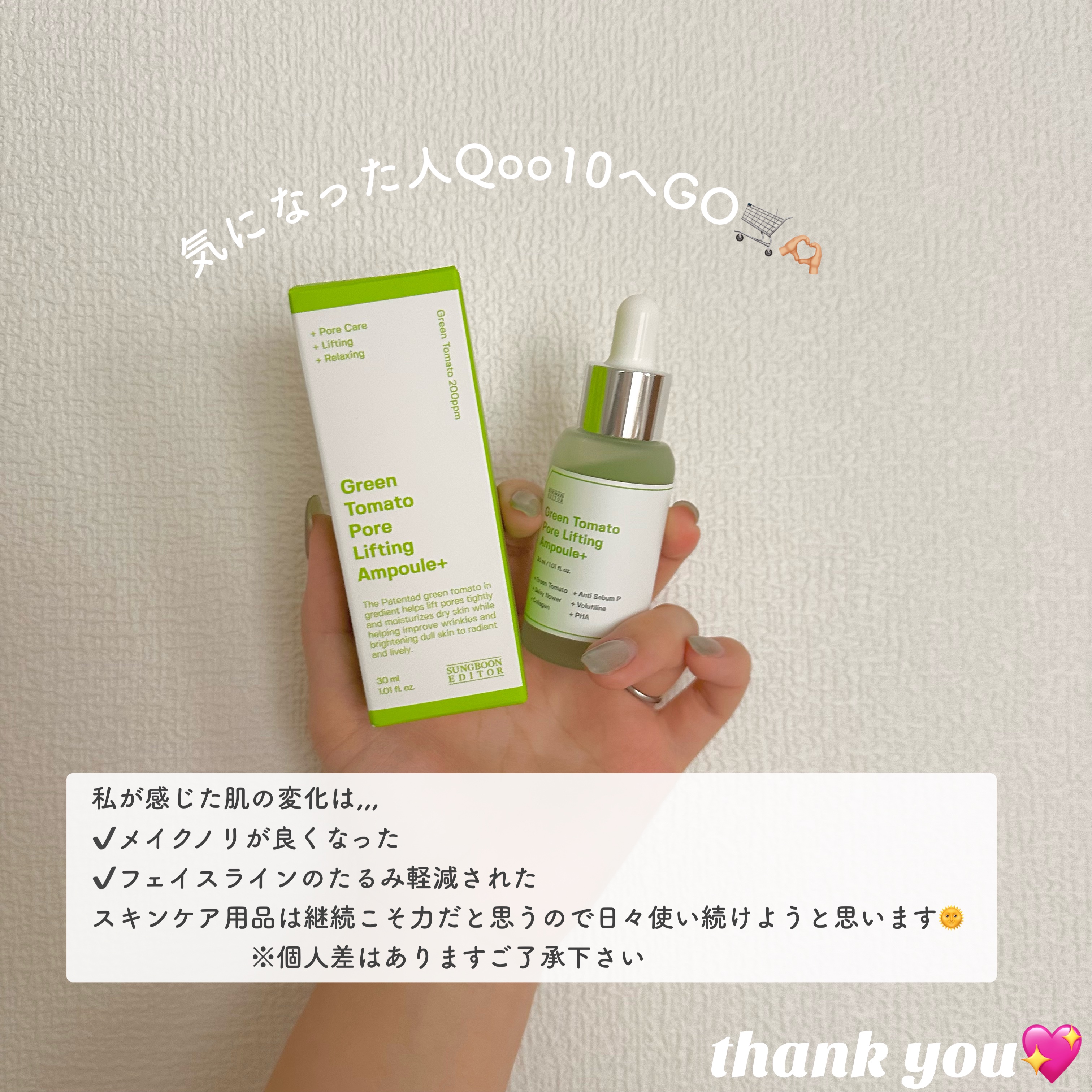 【使った商品】成分エディターグリーントマトNMNポアリフティングアンプル【商品の特徴】毛穴ケア【肌質】混合肌【テクスチャ】とろみがある【どんな人におすすめ?】毛穴ケアしたい人【良いところ】肌なじみが良い【イマイチなところ】可もなく不可もなく✼...