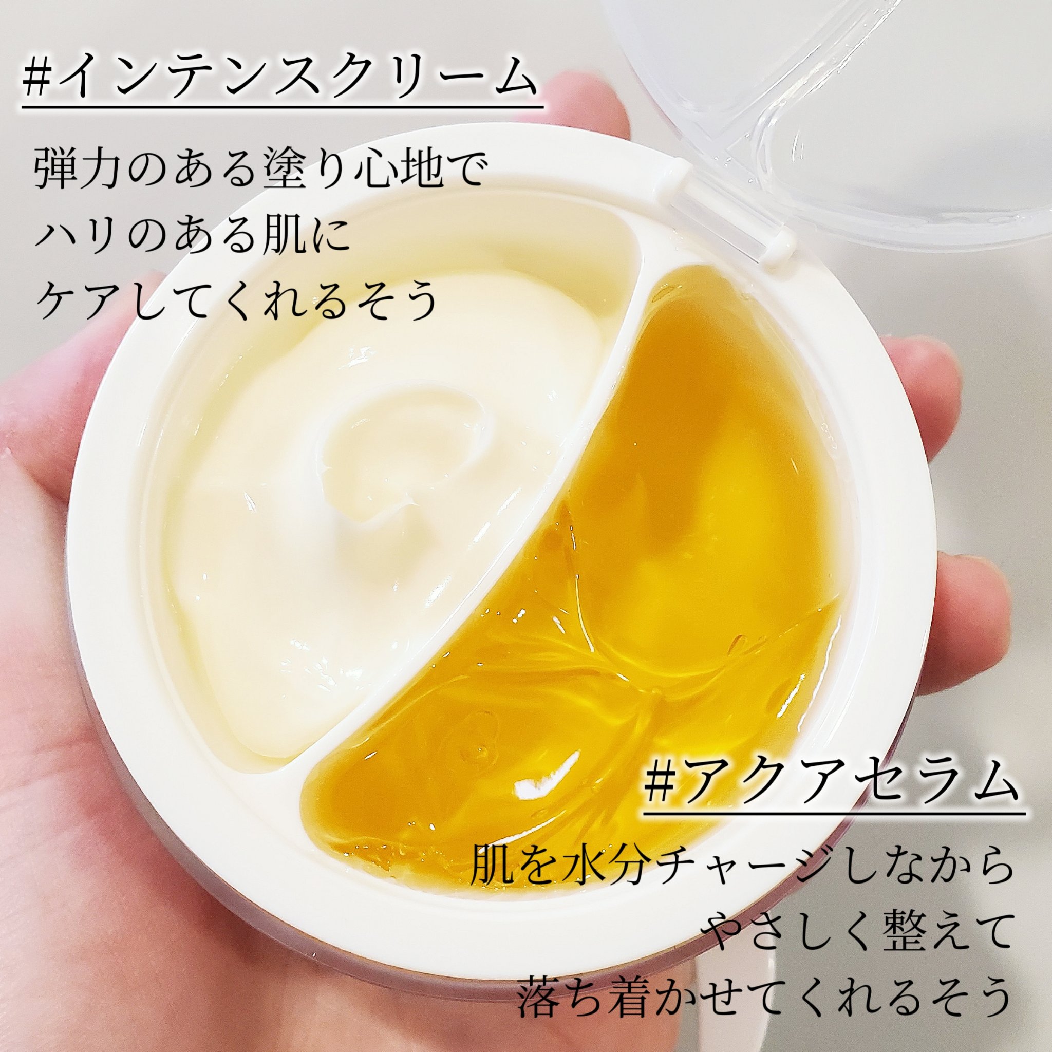 肌のコンディション/タイプに合わせてカスタムケア🍀 《アクアセラム》肌を水分チャージしながらやさしく整えて肌を落ち着かせる セラムとクリームをその日のお肌の状態に合わせてカスタマイズケアできる魅力的アイテム☺️🤍 肌タイプ問わず使いやすいし使い心地も良かった。 翌日もお肌に弾力と保湿を感じられたよ!