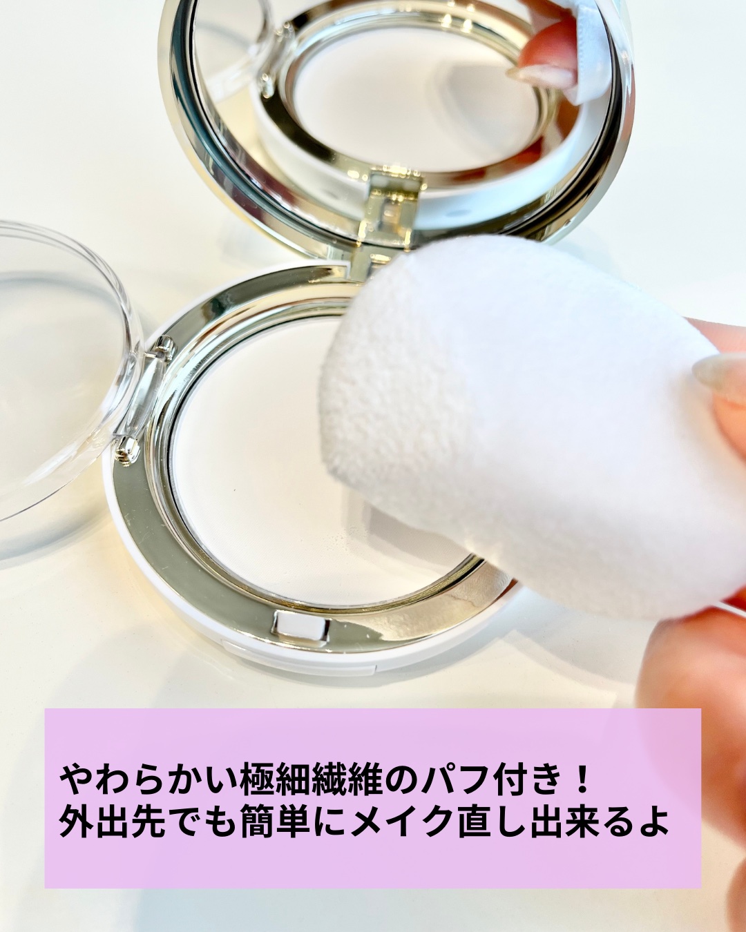 - きめ細かい粒子がテカリを抑えてふんわりなめらかな肌を演出。 外出先でもメイク直し可能なミラー付きパクトタイプ。