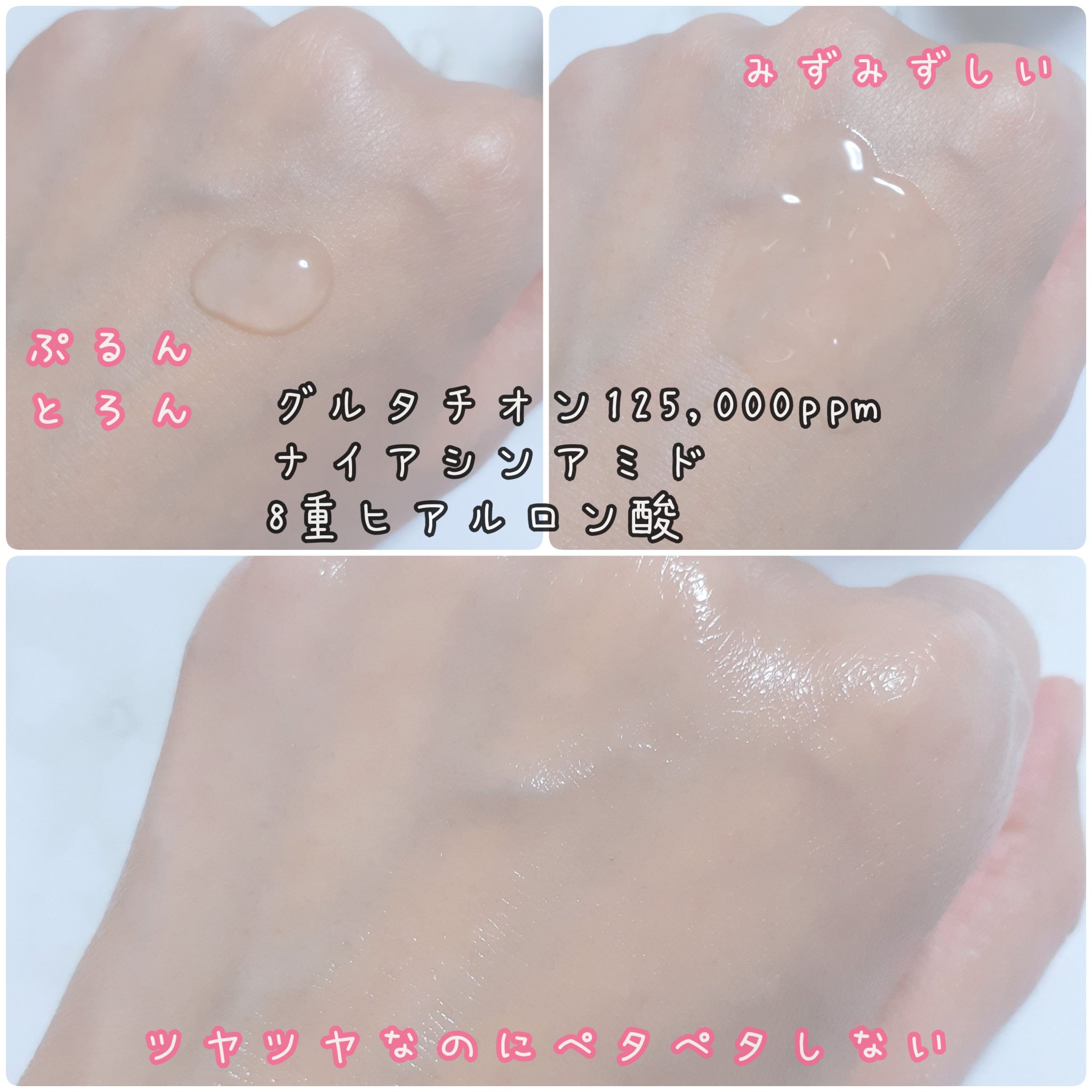 グルタチオン*にビタミンが配合されたセラムです。 注射器型のアプリケーターがユニーク! 使う分だけを吸い取るので清潔に使えそうですね✨ 実験みたいで使うのが楽しいです🥰 肌に伸ばすとみずみずしい使い心地。 水分感たっぷりのなめらかな伸びで ハンドプレスするとしっとりモチモチに🫧 ベタベタしないけど、しっとりツヤのある仕上がりなので 一緒にいただいたマスクパックもしっとりな使い心地で良かった~🩵