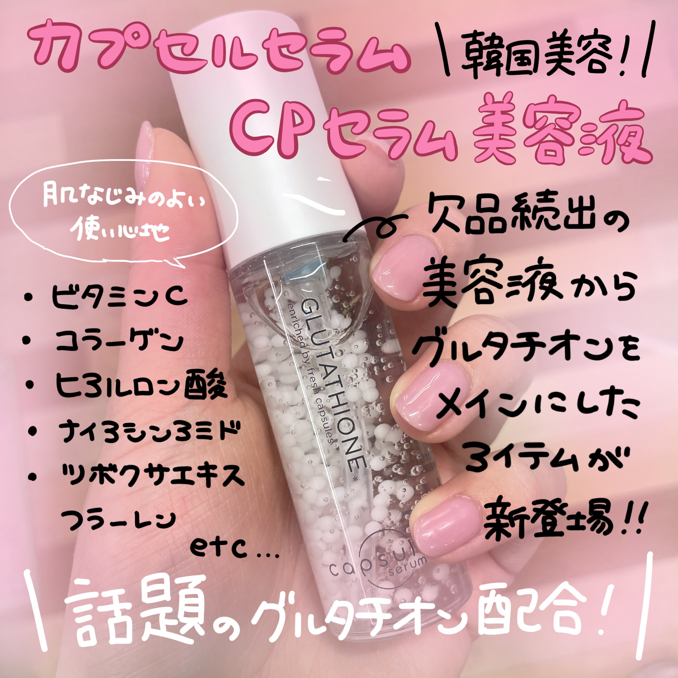 カプセルセラムさまから商品提供いただきましたカプセルセラムCPセラムG美容液話題のグルタチオン美容液🤍独自技術のカプセル製法💊グルタチオングルタチオン(皮膚コンディション剤)ビタミンC誘導体パルミチン酸アスコルビルリン酸3Na、3ーグリセリル...