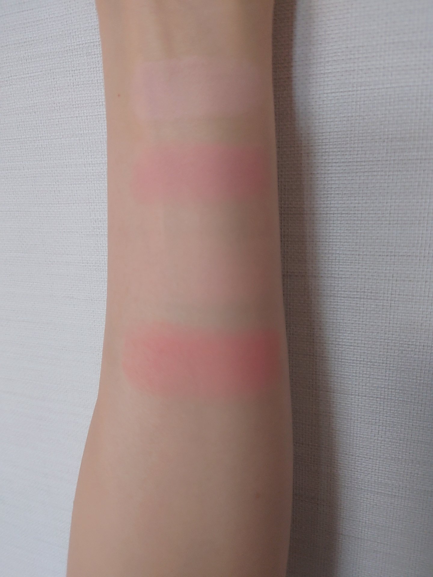 スターライト、ベア、アプリコット、カームは淡い発色で何度か重ねていますが、グロウとファズはとても発色が良いので2度重ねています。 私はブルベ色が似合わないのでイエベ春秋(未診断)だと思います。かなりくすみが苦手なのですが、こちらは薄付きなので白桃のような色に仕上がりました。