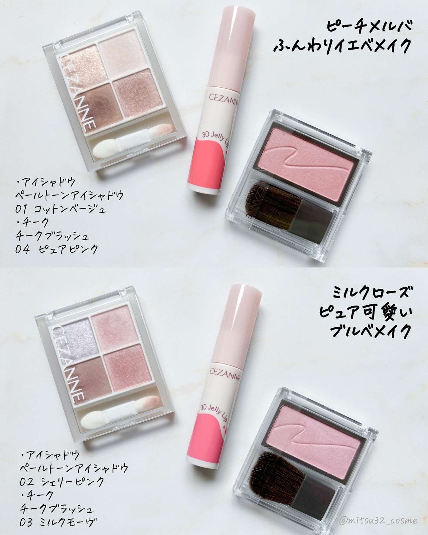 - <01 ピーチメルバ> ミネラルオイル、水添ポリイソブテン、マイクロクリスタリンワックス、リンゴ酸ジイソステアリル、ヒドロキシステアリン酸エチルヘキシル、パルミチン酸デキストリン、ジメチルシリル化シリカ、フェノキシエタノール、メチルパラベン、トコフェロール、シメチコン、水、BG、ユズ果実エキス、モウソウチクたけのこ皮エキス、チャ葉エキス、セイヨウハッカ葉エキス、酸化チタン、黄5、赤202、黄4、酸化鉄、ラウロイルリシン、赤104(1)、水酸化Al、シリカ <02 ミルクローズ> ミネラルオイル、水添ポリイソブテン、マイクロクリスタリンワックス、リンゴ酸ジイソステアリル、ヒドロキシステアリン酸エチルヘキシル、パルミチン酸デキストリン、ジメチルシリル化シリカ、フェノキシエタノール、メチルパラベン、トコフェロール、シメチコン、水、BG、ユズ果実エキス、モウソウチクたけのこ皮エキス、チャ葉エキス、セイヨウハッカ葉エキス、酸化チタン、黄5、赤202、青1、ラウロイルリシン、水酸化Al、酸化鉄、シリカ