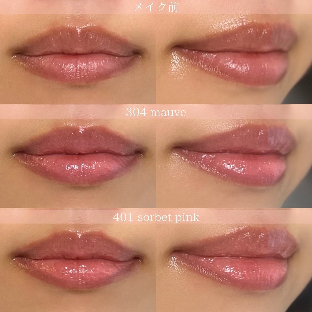 軽やかな塗り心地なのに潤うし、リップクリーム塗るみたいにサッとつけられるから大好きで何本も愛用してるオペラのリップ💋 304番は、ミュートメイクとの相性もバッチリな粘膜ピンク。明るすぎず、暗すぎない絶妙な色味とほんのり青みが入ってるのがポイント! 401番は、ニュートラルなピンクに涼しげなシャーベットをイメージした微細ラメ入り🍨甘いんだけど、どこか爽やかな大人のベビーピンクだよ!