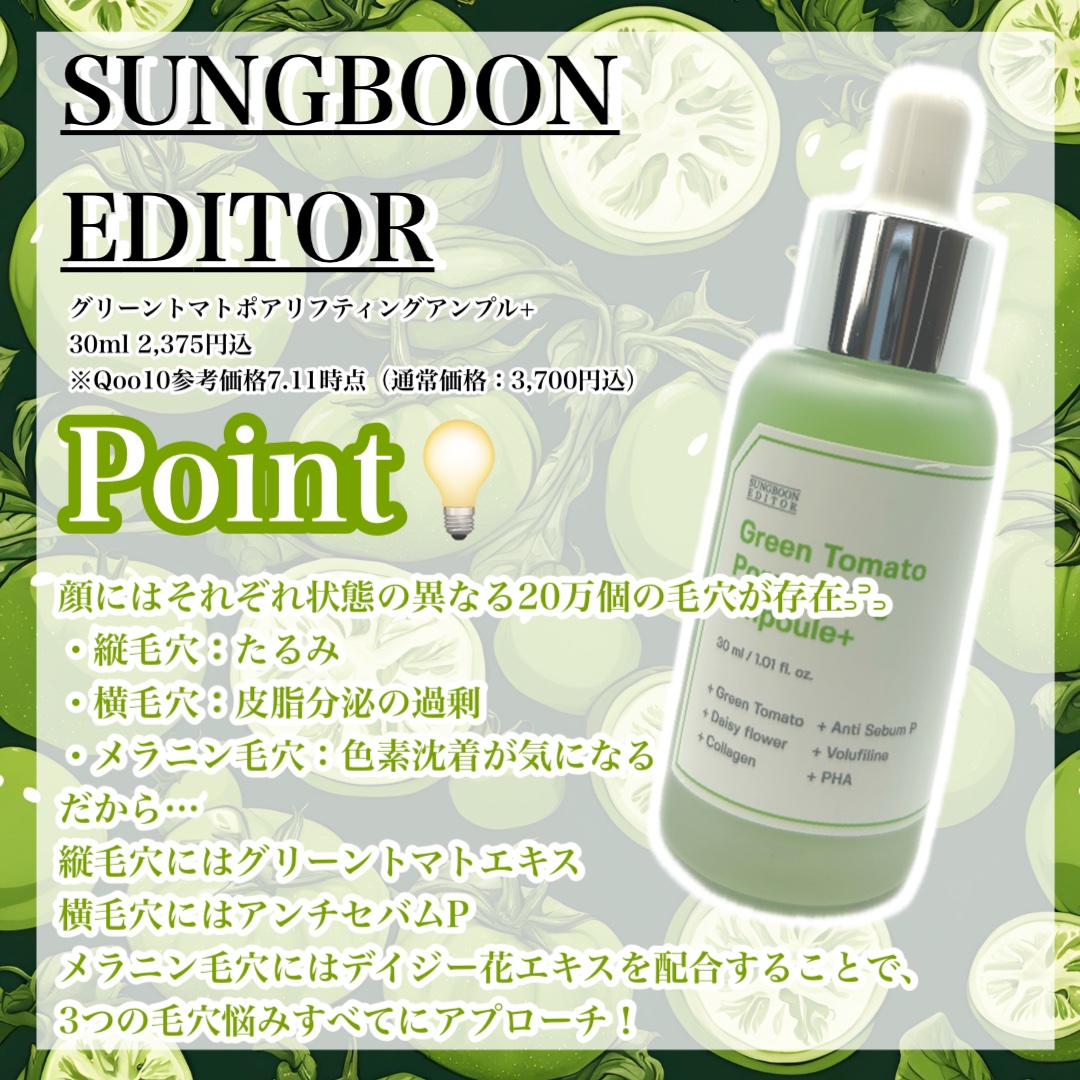 SUNGBOON EDITOR(成分エディター) グリーントマトポアリフティングアンプル+ | 3,700円 |