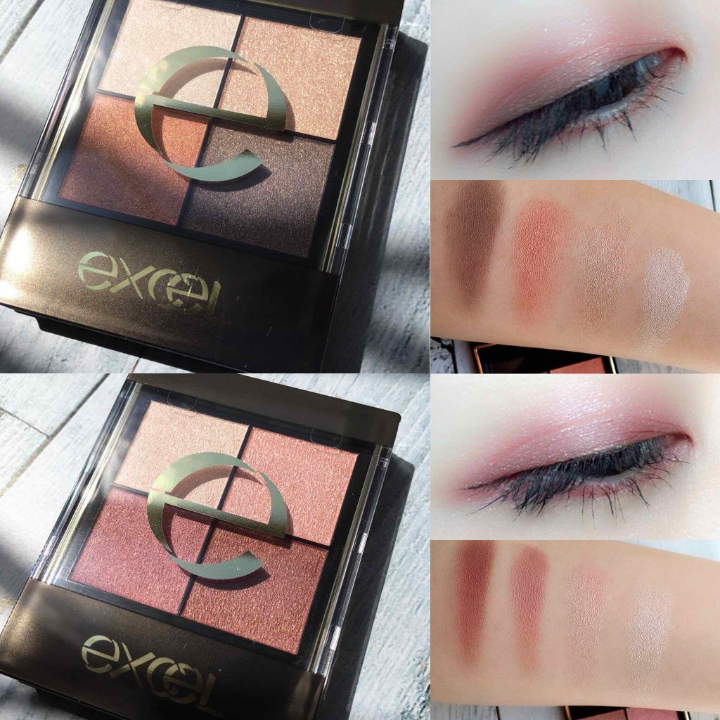 - 1.重ねてもくすまないクリアな発色。ナチュラルに溶け合う絶妙4カラー。 ツヤタイプ(左上・左下カラー):アイホール全体にぼかしたり、目尻へのポイント使いも。 ラメタイプ(右上カラー):アイホール中心や下まぶたにきらめきのアクセント。 マットタイプ(右下カラー):単色で陰影を付けたり、ツヤタイプと重ねてニュアンスをプラス。 2.うっとりするほどリッチな質感で粉飛びしないのに、軽いタッチで伸びて重ねやすいテクスチャー。 3.スクワラン(保湿)配合で目元の乾燥を防ぎます。 [PERFORMANCE] 色と質感の重ね着を楽しむ、ファッション感覚アイシャドウパレット [DESIGN] ・まぶたにひっかからない、なめらかな上質チップ ・薄型コンパクトだからポーチの中でかさばらない [QUALITY] 1.重ねてもくすまないクリアな発色 ナチュラルに溶け合う絶妙4カラー 2.パールの重ね技でまぶたに極上のツヤ感 微細多色 カラーパール 銀コーティング ガラスパール* excel GOLD-MIX処方(金パール配合)* (*右上のシャイニーカラーのみ) 3.うっとりするほどリッチな質感で粉飛び知らず!なのに、軽いタッチで伸びて重ねやすい 4.スクワラン(保湿)配合で目元の乾燥を防ぐ