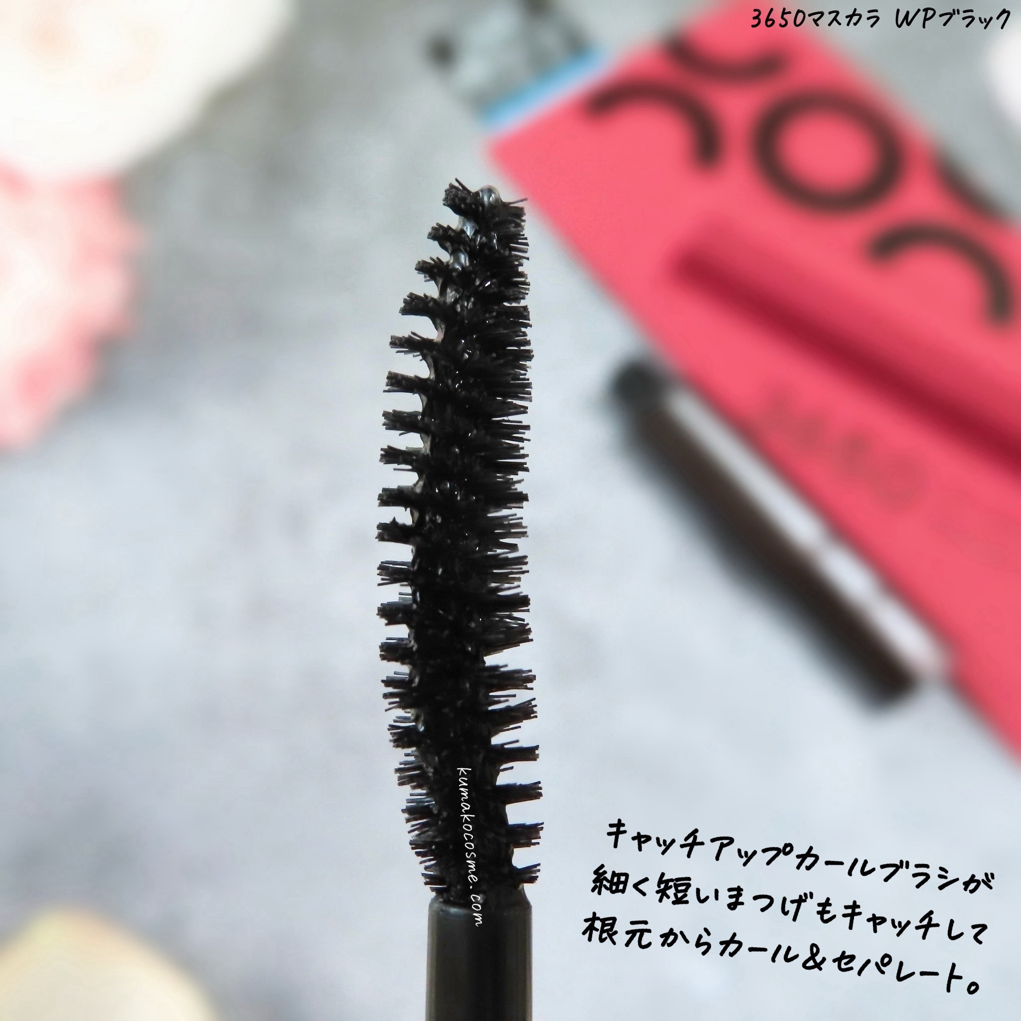 - 極みバランス、贅沢カール。 【上向き続く、ウォータープルーフタイプ】 まつげの根元からカールアップして長時間キープするウォータープルーフタイプ。上向きカール持続。 【キャッチアップカールブラシ】 細く短いまつげもキャッチして根元からカール&セパレート。 日本人の目に合わせて生まれたコンパクト設計の独自ブラシ。 【涙・汗・皮脂・こすれに強く、にじみにくいスマッジプルーフ処方】 落とす時は、3650マスカラリムーバー、または油性クレンジング料をお使いください。 【まつげ美容液成分配合メイクしながら美まつげへ】 マスカラを塗るたびまつげケア。 オタネニンジン根エキス・ツバキ種子油・ビワ葉エキス・パールエキス*1(全て保湿剤) 【抗菌*2ボトル採用】 【アレルギーテスト済み】 全ての人にアレルギーが起こらないわけではありません。 【シリコンフリー アルコールフリー】 <WPブラック> ボリュームも、ロングも、カールキープも、セパレートも。こだわりのバランスを追求した立体的なまつげが叶う、定番ブラック。 <WPブラウン> ボリュームも、ロングも、カールキープも、セパレートも。こだわりのバランスを追求した立体的なまつげが叶う、王道ブラウン。 *1 加水分解コンキオリン *2 全ての菌に有効ではありません。