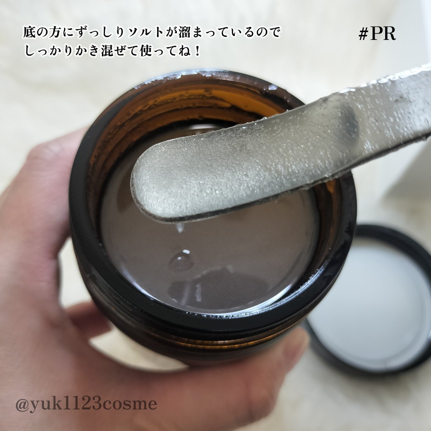 オイル層とソルト層の2層になっている珍しいタイプのソルトスクラブ。 とろ〜っとしていて、よく見るソルトスクラブとはちょっと違うよね! 優しく&しっかりスクラブで身体をケアしてそのまま湯船に!半身浴すると、じんわ〜りとスクラブが溶け出してお肌めちゃんこなめらか✨✨ 天然のアロマの香りがとーっても上品でほのかで、マインドフルネス〜🧘って感じ✨✨