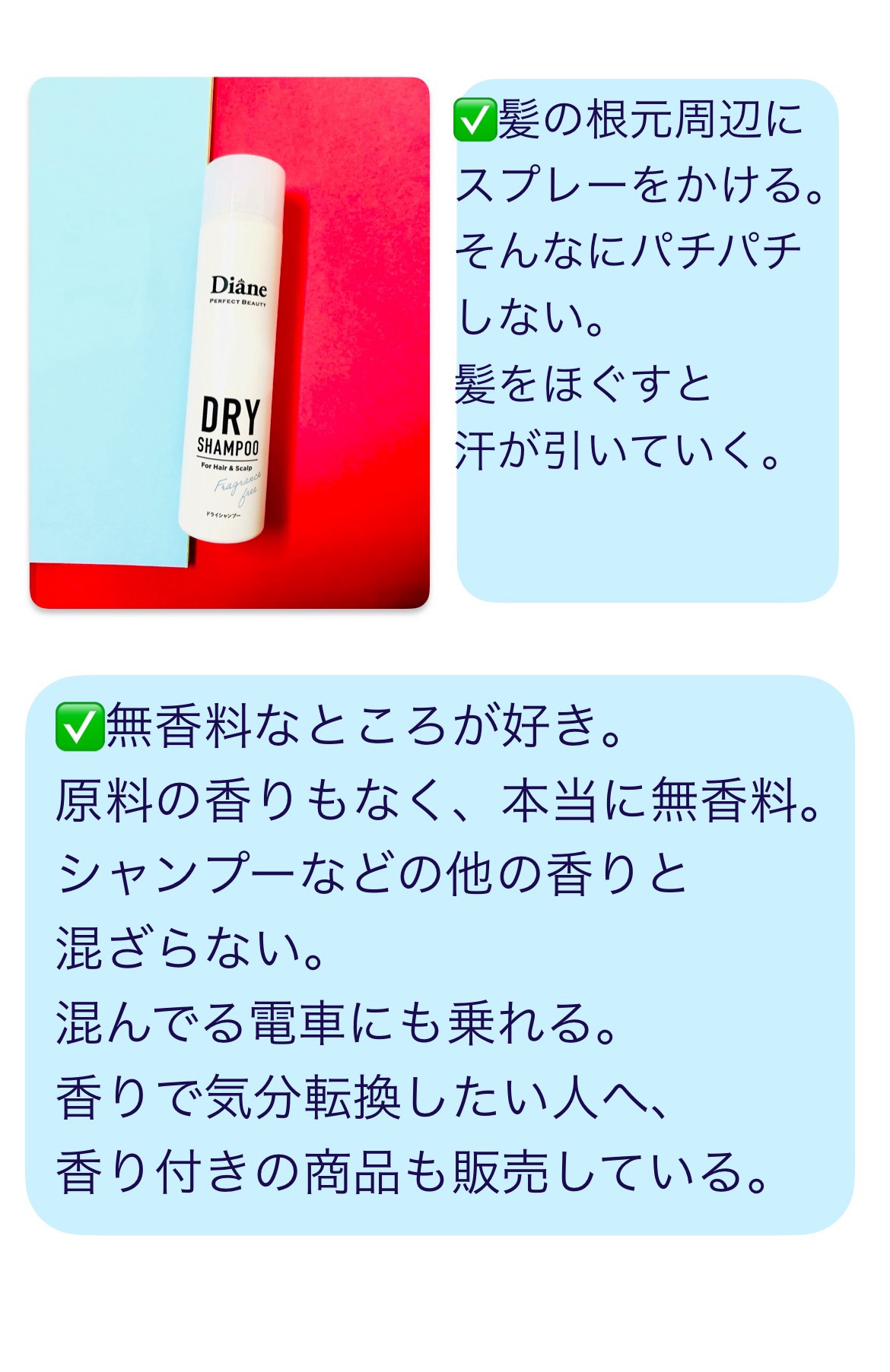 フォロワーさんの購入品を参考に買ってみましたジムや仕事で午後から汗をかいてしまって前髪ペタンコになっちゃったり今日は体調悪くて髪が洗えない💦災害時にもよさそうな無香料のドライシャンプーまずはお試しサイズ✧••✧ダイアンパーフェクトビューティー...