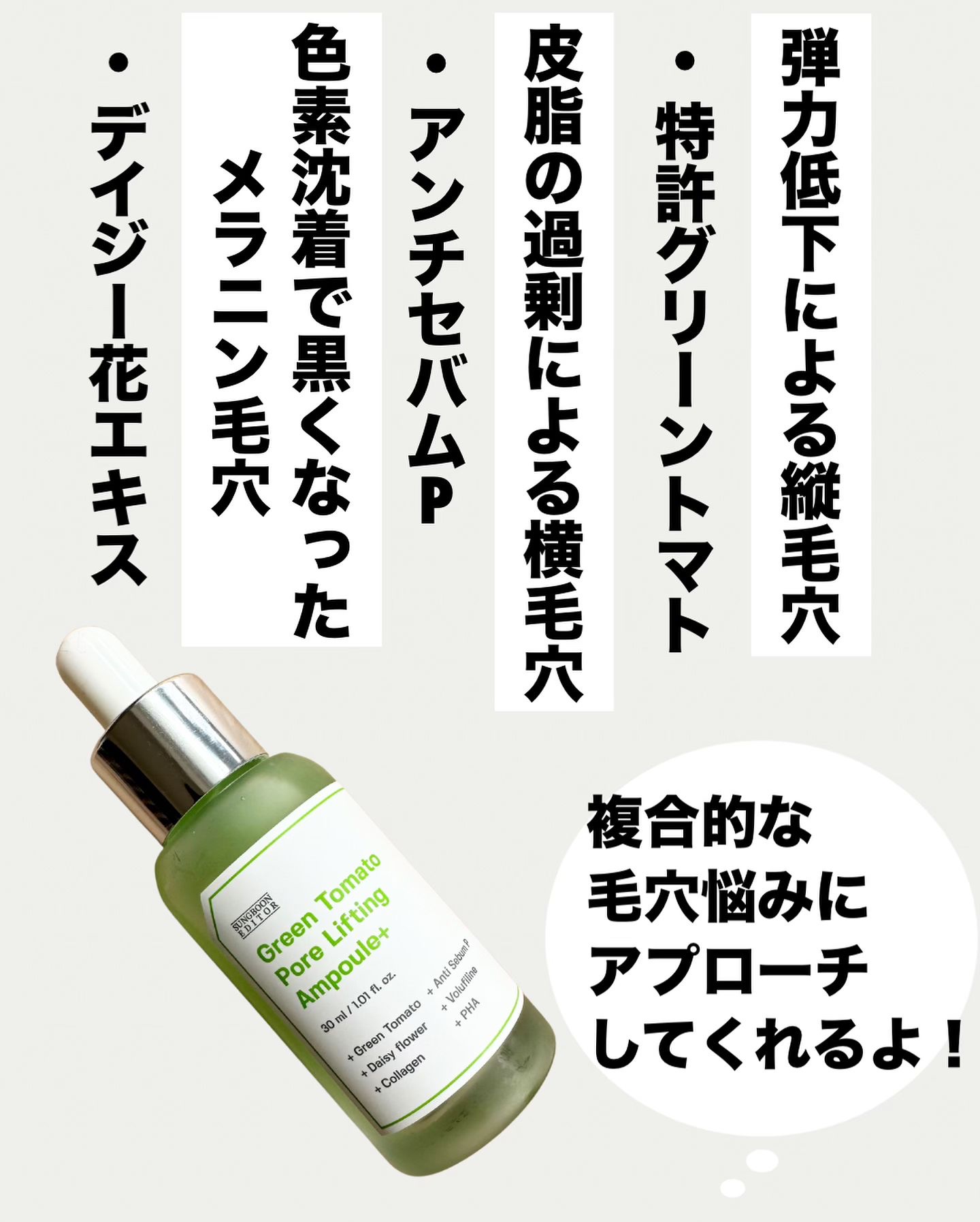 SUNGBOON EDITOR(成分エディター) グリーントマトポアリフティングアンプル+ | 3,700円 |