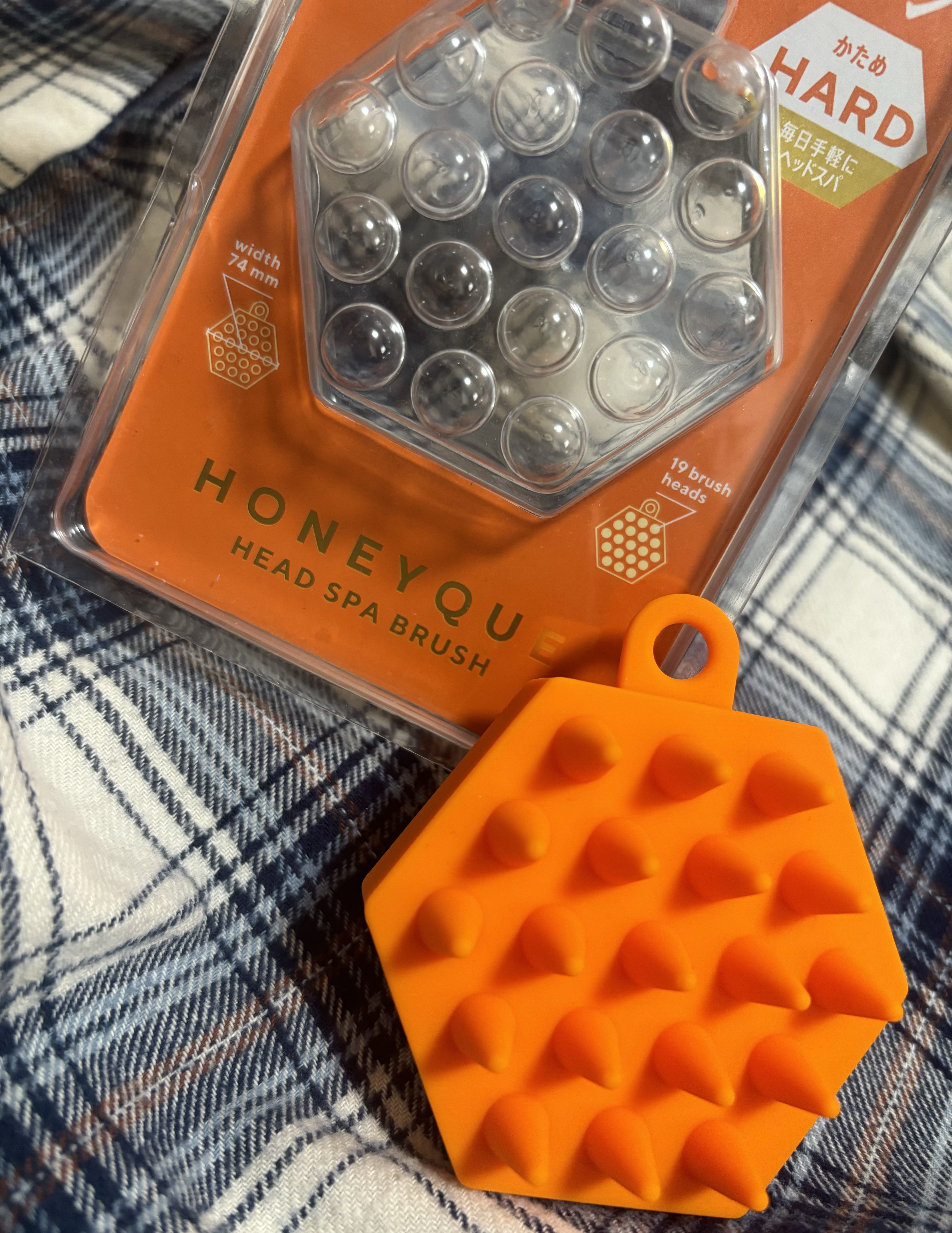 16個の棘山がしっかり頭皮に届く!程よく刺激してくれて気持ち良い😌🤍 シャンプー中は泡立ち良くなるし普段からツボ押しとしても使える🙆🏻♀️ 使うとスっと頭が軽くなる感じがするしほぐれると気持ちもリラックスできる❤️ この六角形が握りやすいのも好き! 硬さは2種類あってソフトは柔らかいけどしっかり押してくれる感じ! もっと刺激が欲しい人はハードで😎 でも痛いほど硬くはないので結構だれでも使いやすいと思います🫶🏻 夫婦で使ってますが旦那もお気に入りꉂ🤭 シャンプーしながらが好きみたい! 私はお風呂入る前に軽く刺激するアウトバスでの使い方が好きかな🧡
