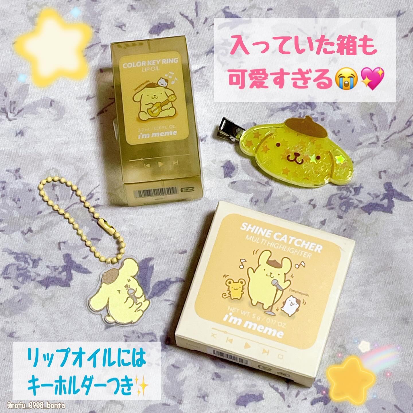 カラーキーリングリップオイル サラリとしたテクスチャのリップオイル✨ 発色はほんのりオレンジで強すぎないので、リップの下地や乾燥対策にも良さそうだなと思います😌💓 シャインキャッチャーマルチハイライター ぷくっとプリンくんが出てる❣️ オレンジ・ゴールドのハイライター✨ ギラギラしないほんのりだけど発色のよいハイライターで綺麗🫰💓 シナモロールのも可愛すぎる...🥹🩵(世代) シナモロールは、[セッティングパウダー]も限定で発売してました~‼️