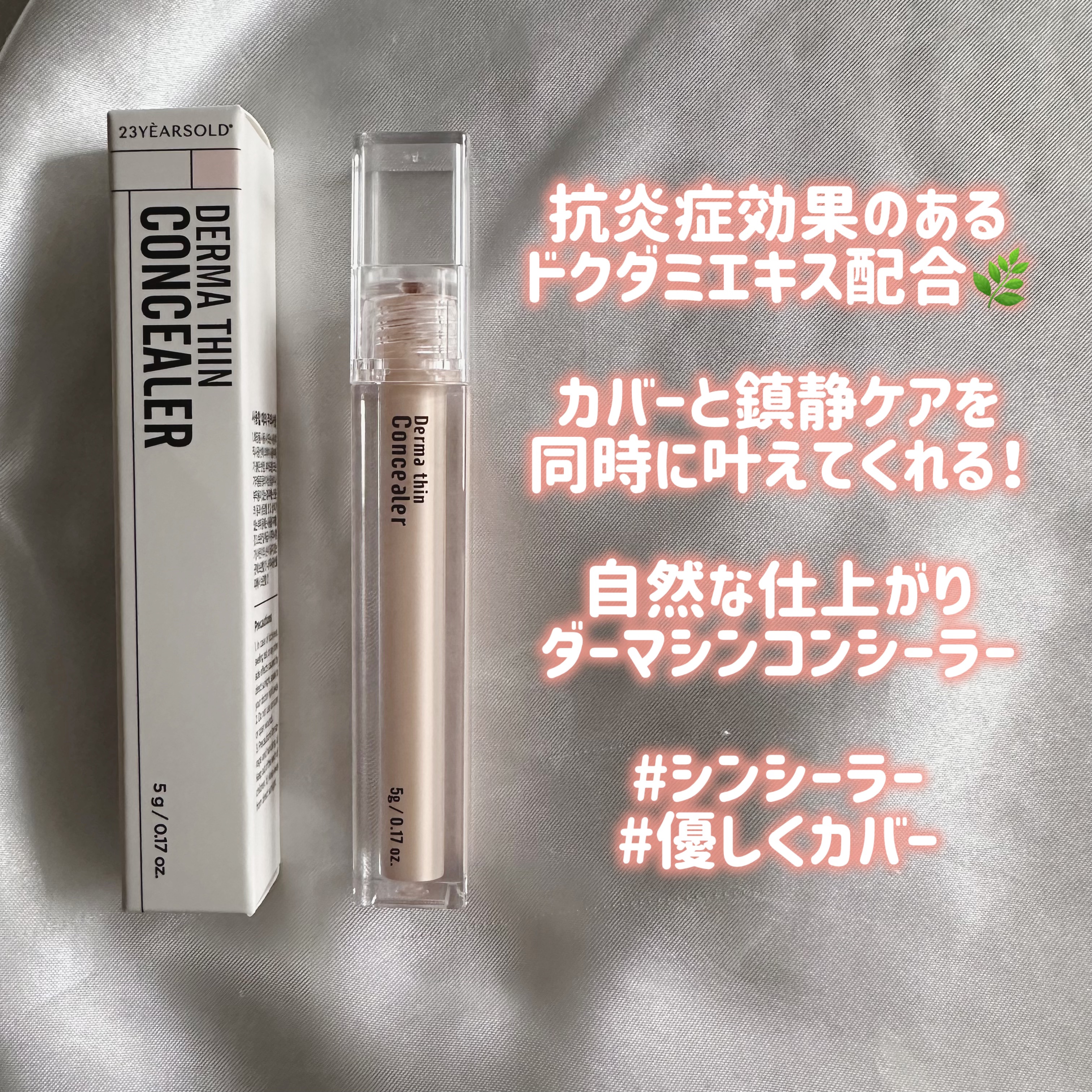 韓国のプレミアムホームケアブランド「23yearsold」。 「ダーマシンコンシーラー」は、韓国のメイクアップアーティストであるハムギョンシクさんと共同開発により作られた商品なのだそう。 こちら1本でファンデーションなしでもベースメイクをきれいに仕上げてくれるというところ。