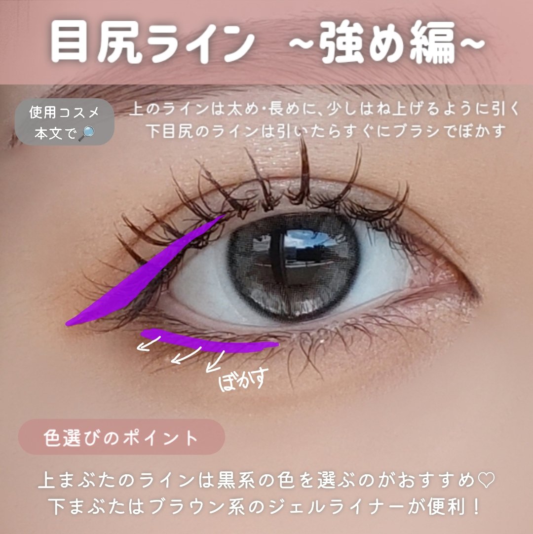 たしかに引き方で印象結構違くなるよね、、🎀💗 基本優しめメイクしてるんだけど、たまには強い感じのメイクも挑戦してみようかな💗