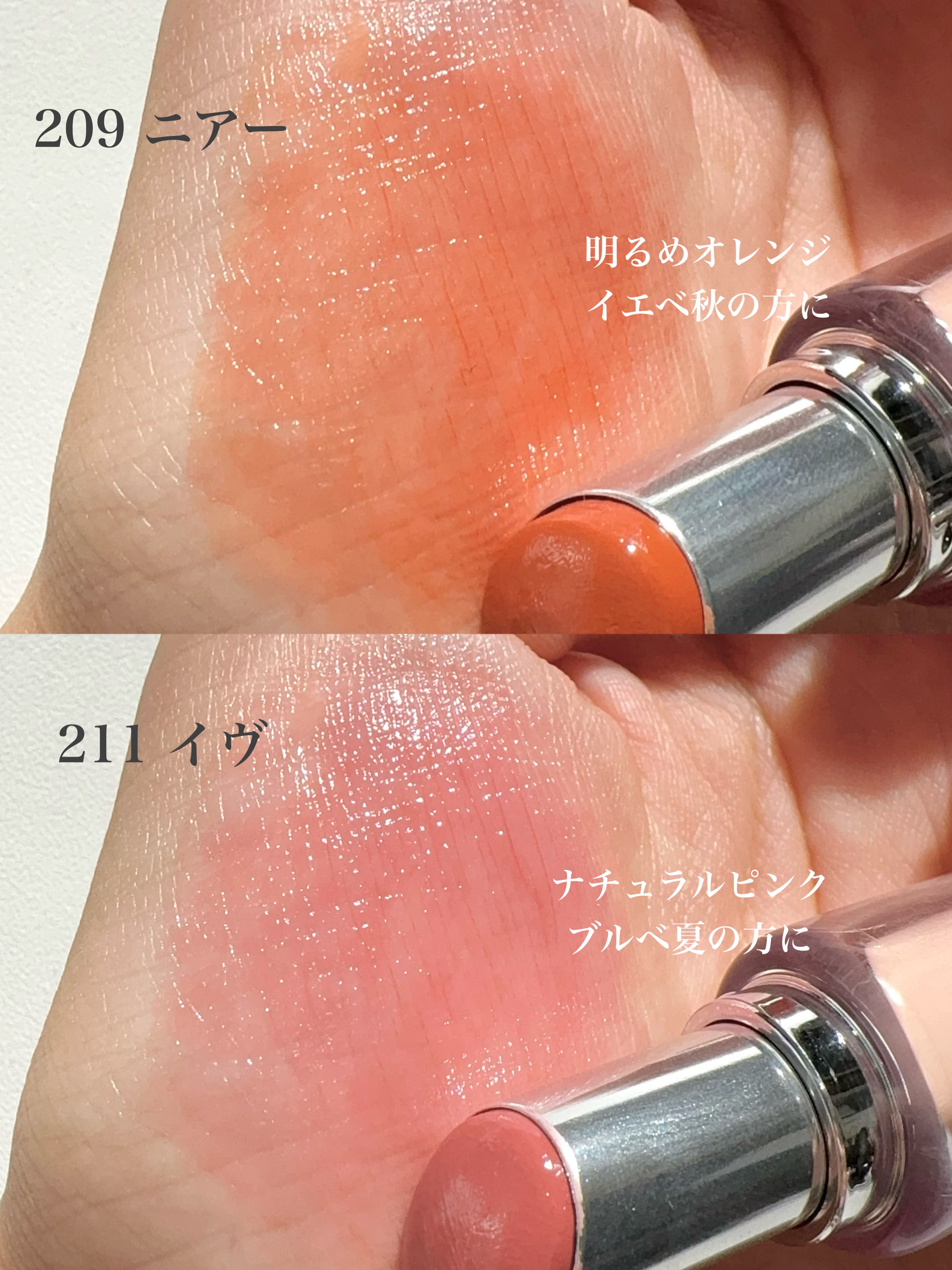 ねっちょりボリューム感あるテクスチャーだけど、ベタつきなく使いやすい。 ティントじゃない普通のグロスだから色もちは良くない。 発色ナチュラルだからこれだけでもいいけど、他のリップと合わせても可愛い!!