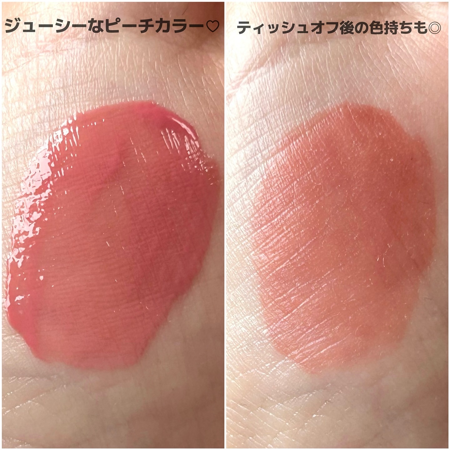 デューティントは水みたいな使用感の うるおい強めでツヤ感がかわいいティント♡ よりうるうるの唇にしたい時や 乾燥が気になる時に良さそう! ピーチバニーは カラー名のまんま桃みたいな ジューシーなピンク色♡ リップいっぱいあるから 頑張って1本に絞ったけど 1本に絞るの大変やったー 1本買うと他のカラーも欲しくなるー!