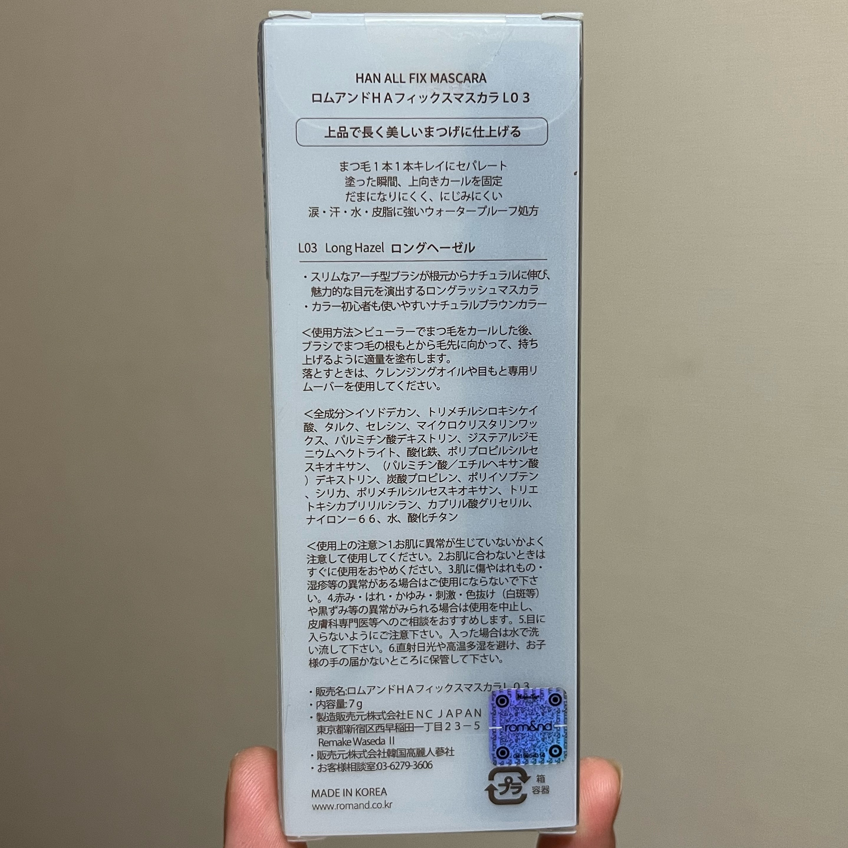 商品詳細情報rom&nd ハンオールフィックスマスカラ