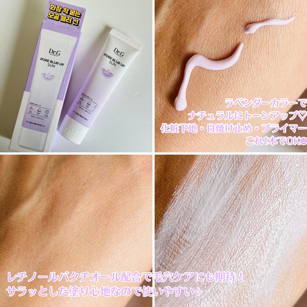 ラベンダー色のトーンアップuvでプライマー効果もあるので化粧下地にも✨ 次世代レチノールバクチオール入りなので毛穴ケアも出来る優れもの!! 皮脂コントロールパウダー入りだからサラッとして使いやすくなってるよ!