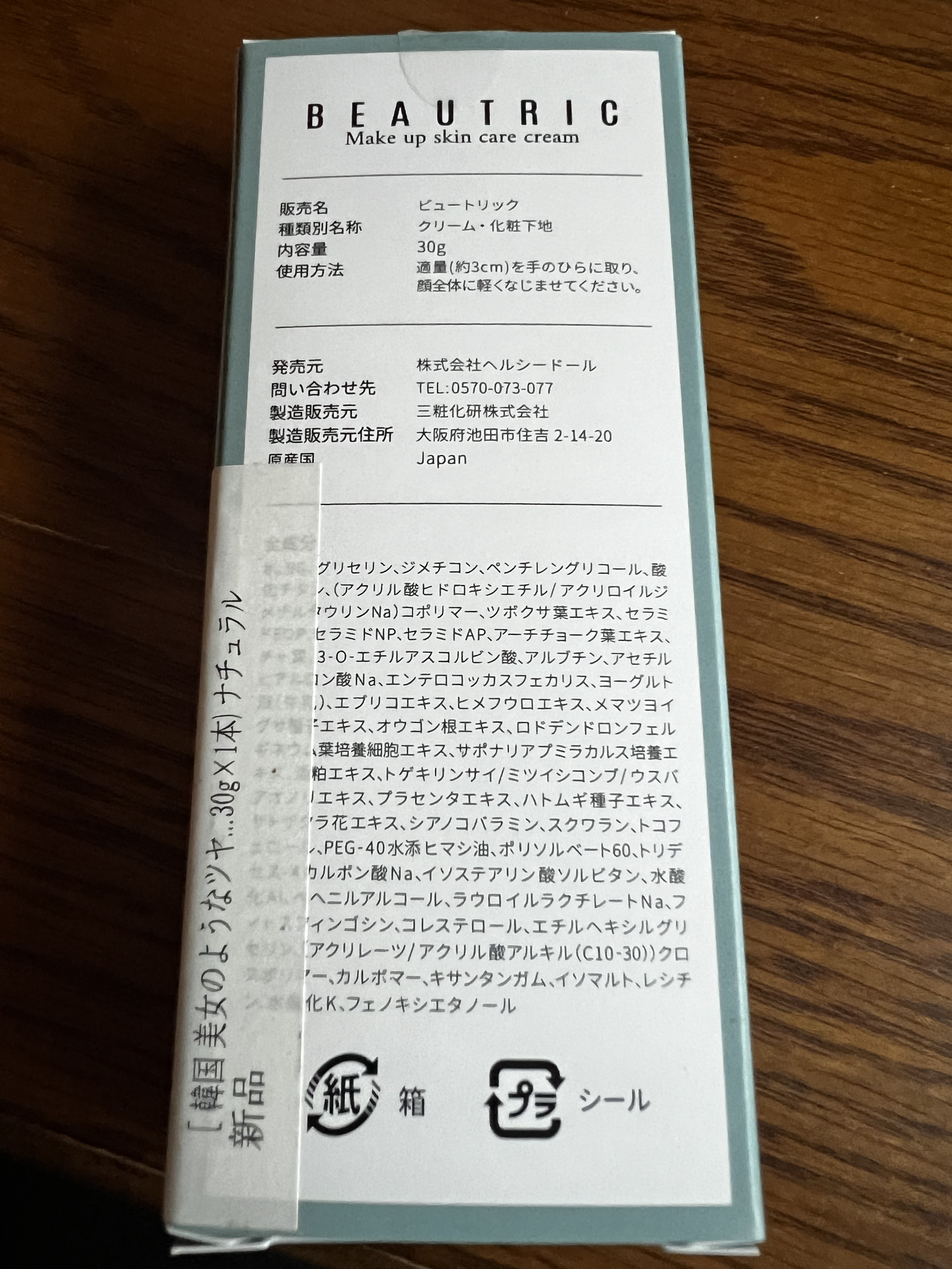 - 水・ブチレングリコール・グリセリン・ジメチコン・ペンチレングリコール・酸化チタン・(アクリル酸ヒドロキシエチル/アクリロイルジメチルタウリンNa)コポリマー・ツボクサエキス(ツボクサ葉エキス)・セラミドEOP(セラミド1)・セラミドNP(セラミド3)・セラミドAP(セラミド6Ⅱ)・アーチチョーク葉エキス(アーティーチョーク葉エキス)・チャ葉・3-O-エチルアスコルビン酸(ビタミンC誘導体)・アルブチン・アセチルヒアルロン酸Na・エンテロコッカスフェカリス・ヨーグルト液(牛乳)・エブリコエキス・ヒメフウロエキス・メマツヨイグサ種子エキス・オウゴン根エキス・ロドデンドロンフェルギネウム葉培養細胞エキス・サポナリアプミラカルス培養エキス・酒粕エキス・トゲキリンサイ/ミツイシコンブ/ウスバオアノリエキス・プラセンタエキス・ハトムギ種子エキス・サトザクラ花エキス・シアノコバラミン・スクワラン・トコフェロール・PEG-40水添ヒマシ油・ポリソルベート60・トリデセス-4カルボン酸Na・イソステアリン酸ソルビタン・水酸化Al・ベヘニルアルコール・ラウロイルラクチレートNa・フィトスフィンゴシン・コレステロール・エチルヘキシルグリセリン・(アクリレーツ/アクリル酸アルキル(C10-30))クロスポリマー・カルバマー・キサンタンガム・イソマルト・レシチン・水酸化K・フェノキシエタノール