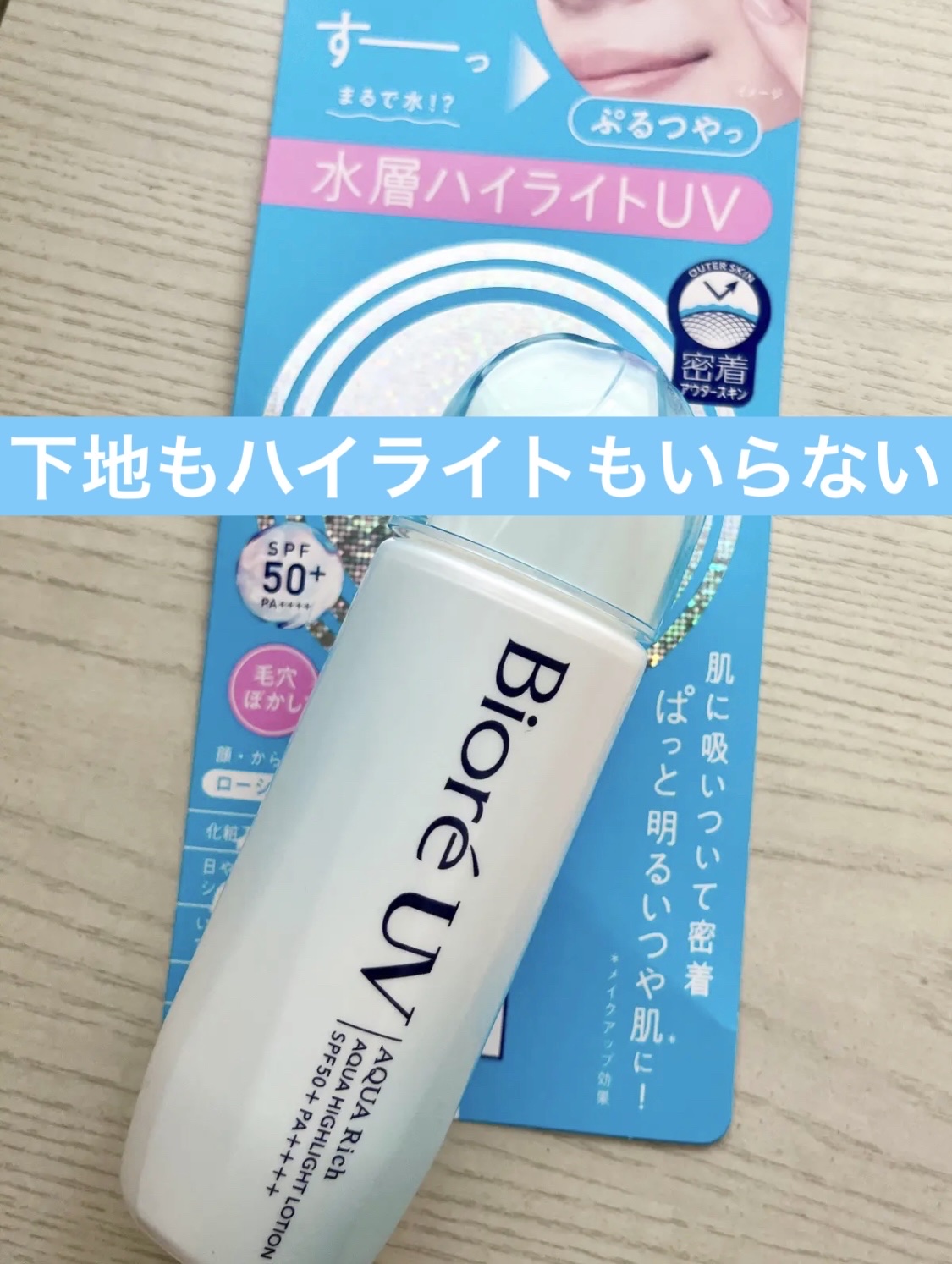 .ビオレUVアクアリッチアクアハイライトローション🌸#水層ハイライトuv身体用に購入🙌シャバシャバ系の日焼け止め。ジェルタイプに慣れてた私としてはやや使いづらい笑でも微粒のパールがすごくて、ほんとにキラキラつや感がアップ。頰、鼻筋やひたいに使...