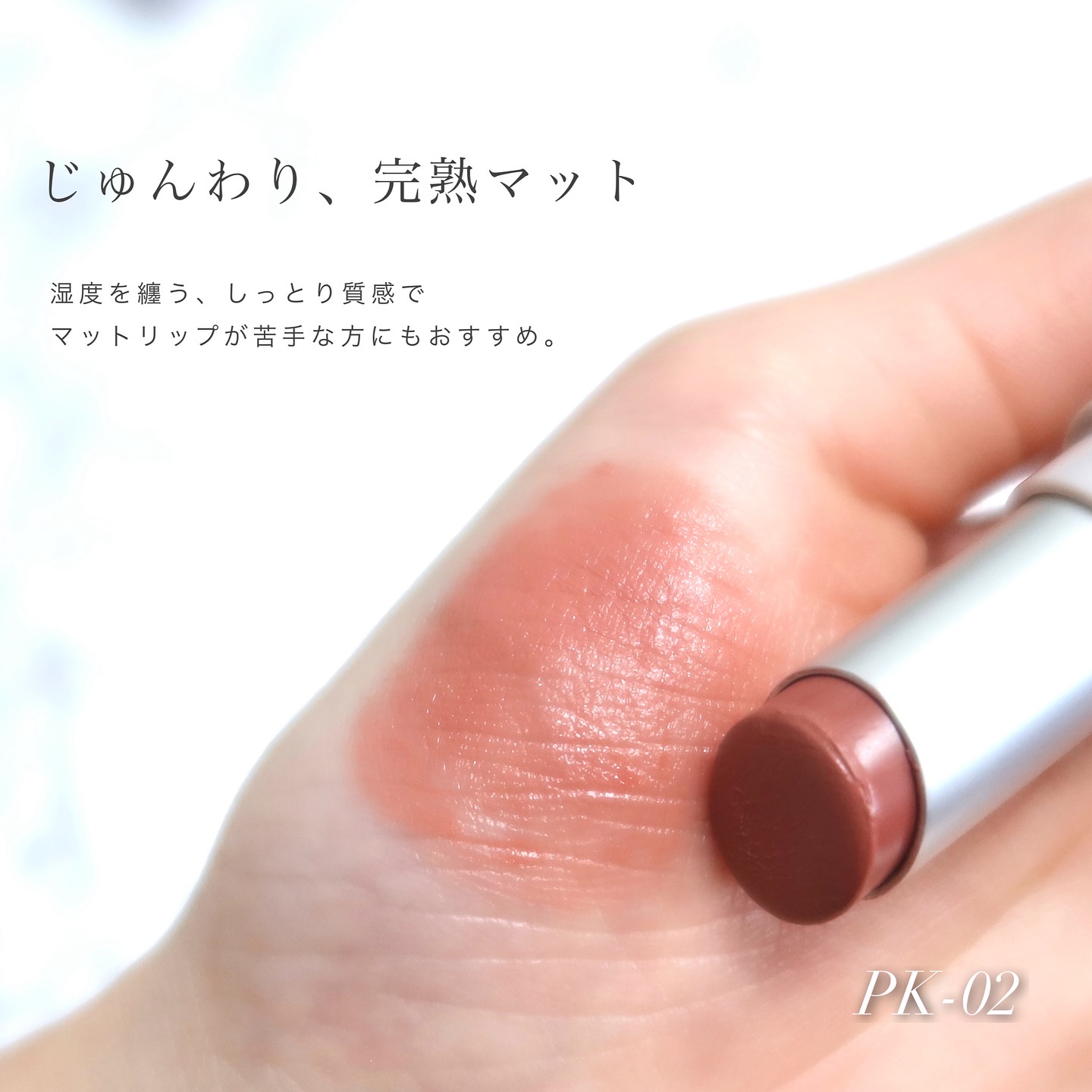- センシュアルを引き出す、湿度をまとったマットリップスティック。 とろけるようなリップベースと球状パウダー*1がなめらかな塗り心地を実現し、ソフトフォーカス効果で縦ジワを補正します。 板状パウダー*2が唇にピタっと密着!落ちにくく、つけたての高発色を長時間キープします。 美容エモリエント成分配合でつけている間中、唇をトリートメントし、乾燥を防ぎます。 マットなつけ心地なのにうるおいを感じる使用感です。 *1:シリカ、ポリメチルシルセスキオキサン、アルミナ(粉体基剤) *2:硫酸Ba、ジメチコン、水酸化Al(粉体基剤)