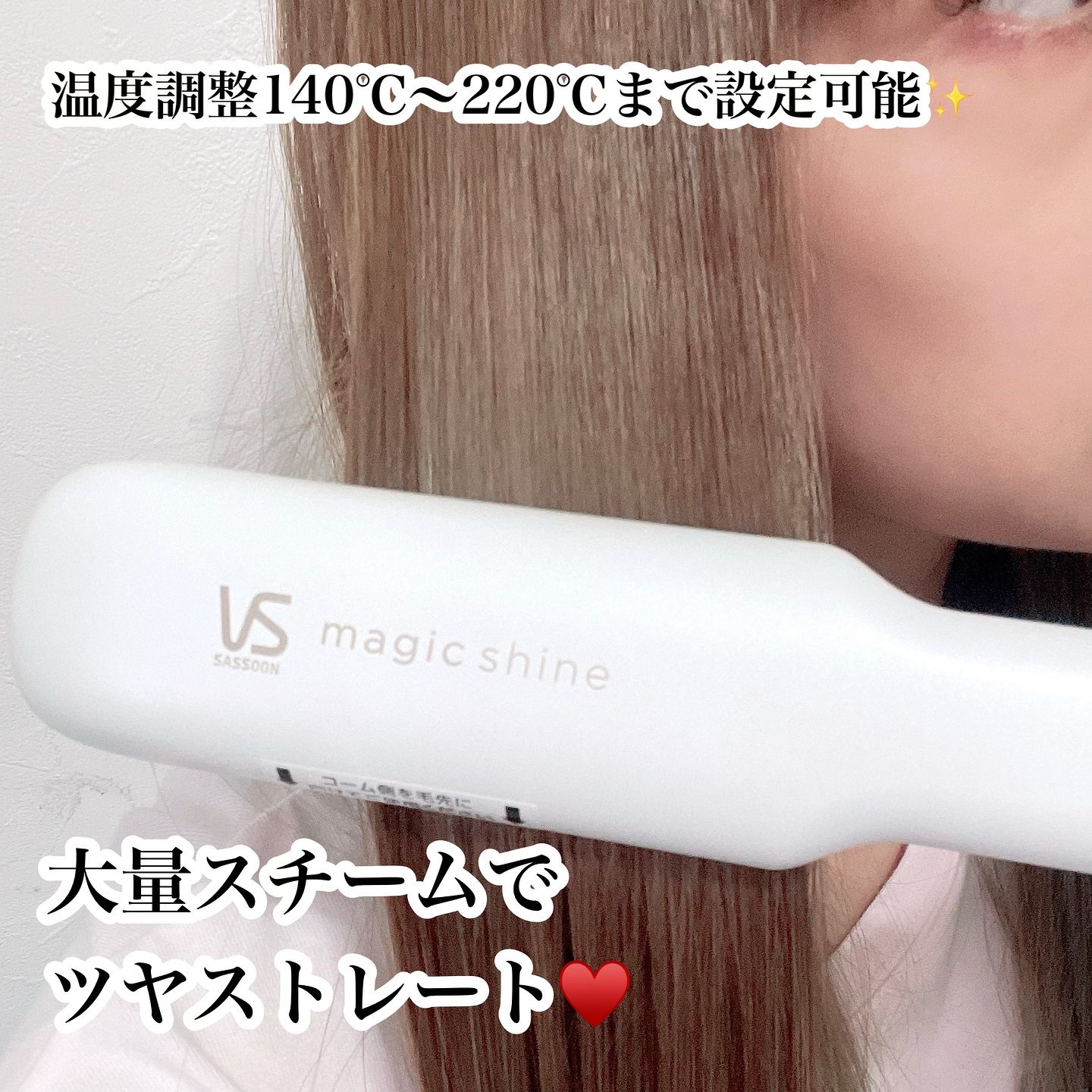 - ■特長 ・ヴィダルサスーン史上最大スチーム量(※1)でうるツヤストレートへ。 ・シャイニーミラーコーティング採用。しなやかでツヤのある髪へ導く。 ・最高温度約220℃の高温設定。約140~220℃までの5段階温度調節可能。(※2) ・大量の高温スチームで、ストレートが24時間続きます。(※3) (※1)当社調べ、2023年9月時点 (※2)周囲温度30℃の場合 (※3)【試験方法】うねりのある毛髪を選別し、毛束を作成。処理前の毛束全長を測定し、キューティクルの流れにそって毛先方向に4~5秒の速さで5回滑らせた後、24時間後に毛束全長を測定。(第三者機関調べ)〇VSS-9920同等性能品による測定。【測定環境】室温20℃±5℃、相対湿度60%±10%