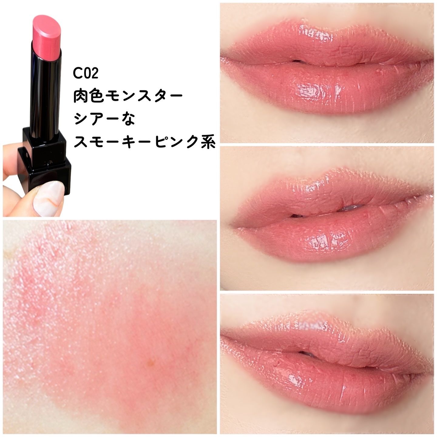 ◯KATEリップモンスタークリアトーンC02 肉色モンスターシアーなスモーキーピンク系💕『発色を抑えたなじみ発色カラーが唇の色と同化。長時間色持続で、落ちにくい。』♡全3色♡保湿(←個人的にはめちゃくちゃ保湿されてる感じというより、リプモンと...