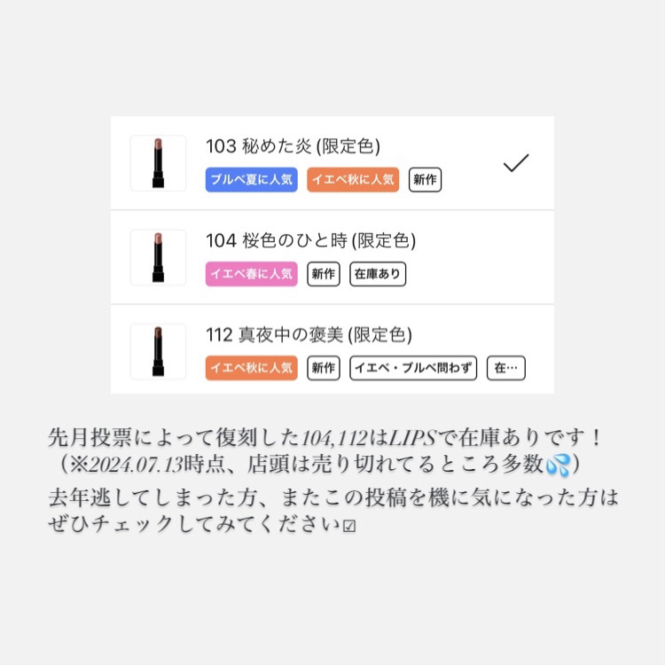 【待望の再販!】6.22MYリップモンスター再販!👑※6.18より順次配荷開始スワイプして詳しくチェック!▶▶2023年に限定発売された1月から12月までの各月をテーマにしたMYリプモンスターコレクションから総選挙を経て、TOP3を勝ち取った...