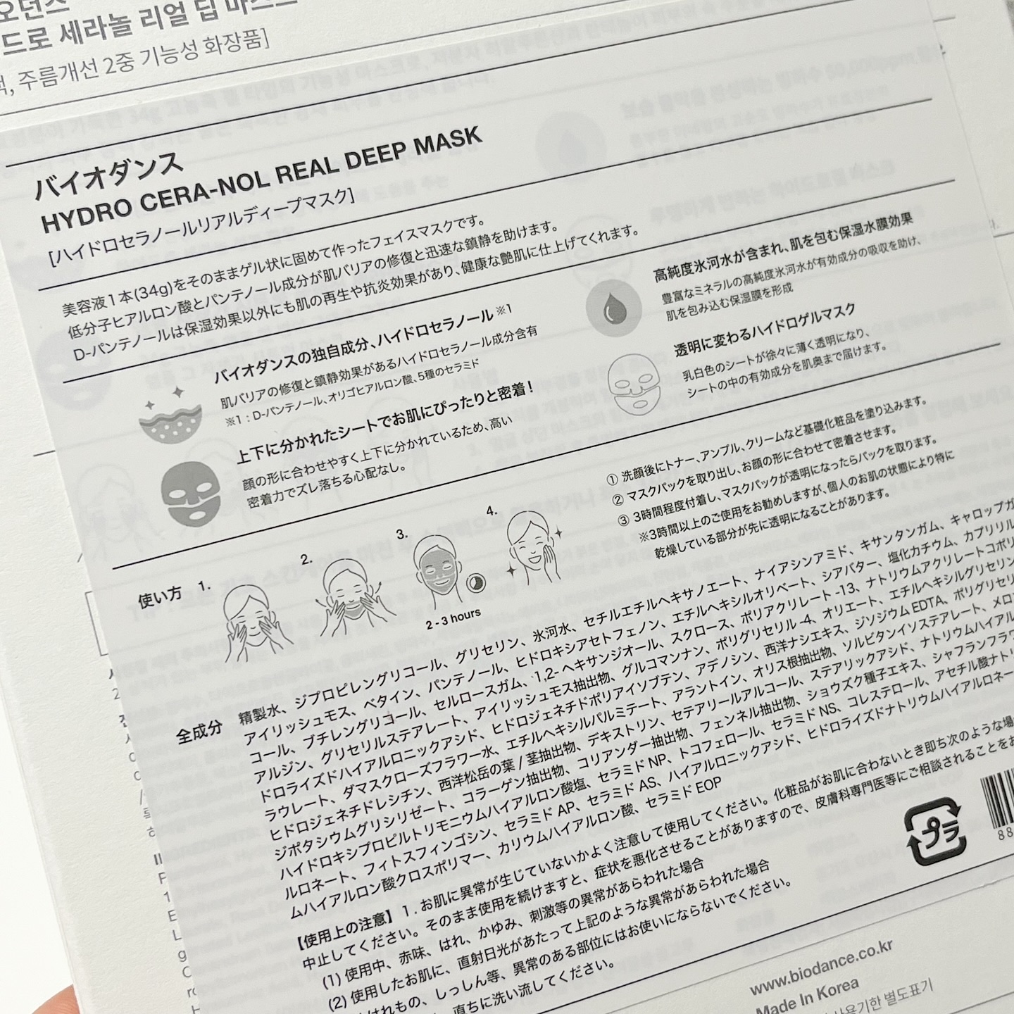 商品詳細情報Biodance ハイドロセラノールリアルディープマスク