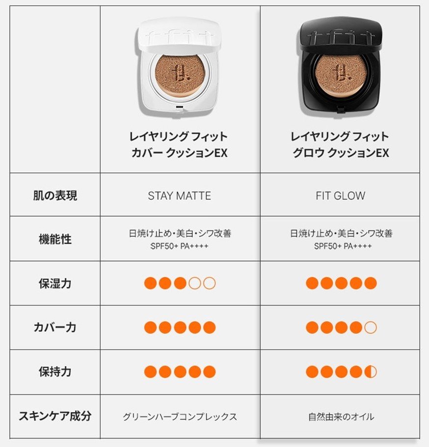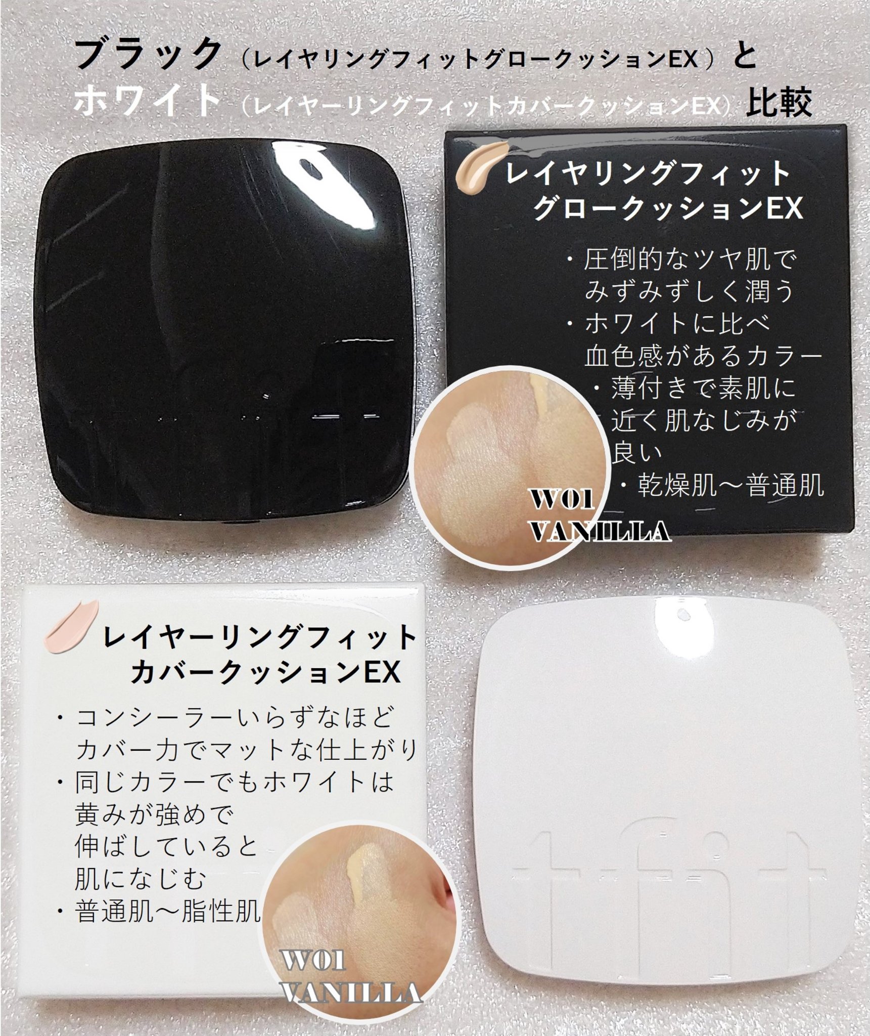 みずみずしくカバー力があり、ホワイトに比べてツヤ感があります。 W01 VANILLAはピンクよりの血色カラーで 色白の私の肌にとても合っていて肌なじみが良く、 奇麗な素肌感のある仕上がりに。 しっとりとした自然な光彩クッションよりカバー力、 セミマットタイプのクッションをご希望の場合は TFITのホワイトクッション(レイヤリングフィットカバークッションEX)を お勧めします. オフラインの場合、現在1800店舗が入店中です。 直接商品テストをしてみて購入をご希望の場合は近くのオフライン売り場で購入できます.(「レイヤリングフィットグロークッションEX」が7月よりオフラインに入店しました。)