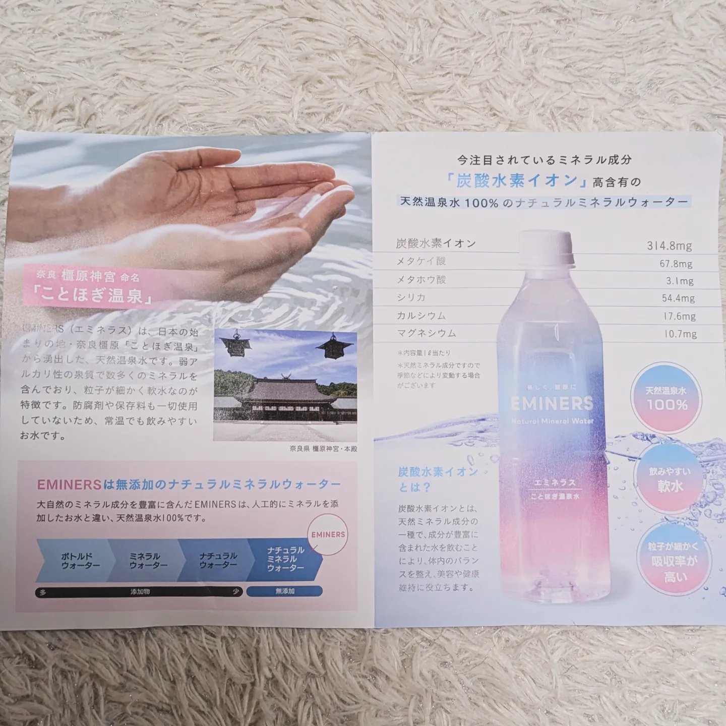 EMINERSは、今注目されているミネラル成分「炭酸水素イオン」高含有の天然温泉水100%のナチュラルミネラルウォーターです♡ パッケージもピンクで可愛くてついつい持ち運びたくなっちゃいます! EMINERSのナチュラルミネラルウォータが1番飲みやすくて美味しい!!を感じられるので大好きです♡