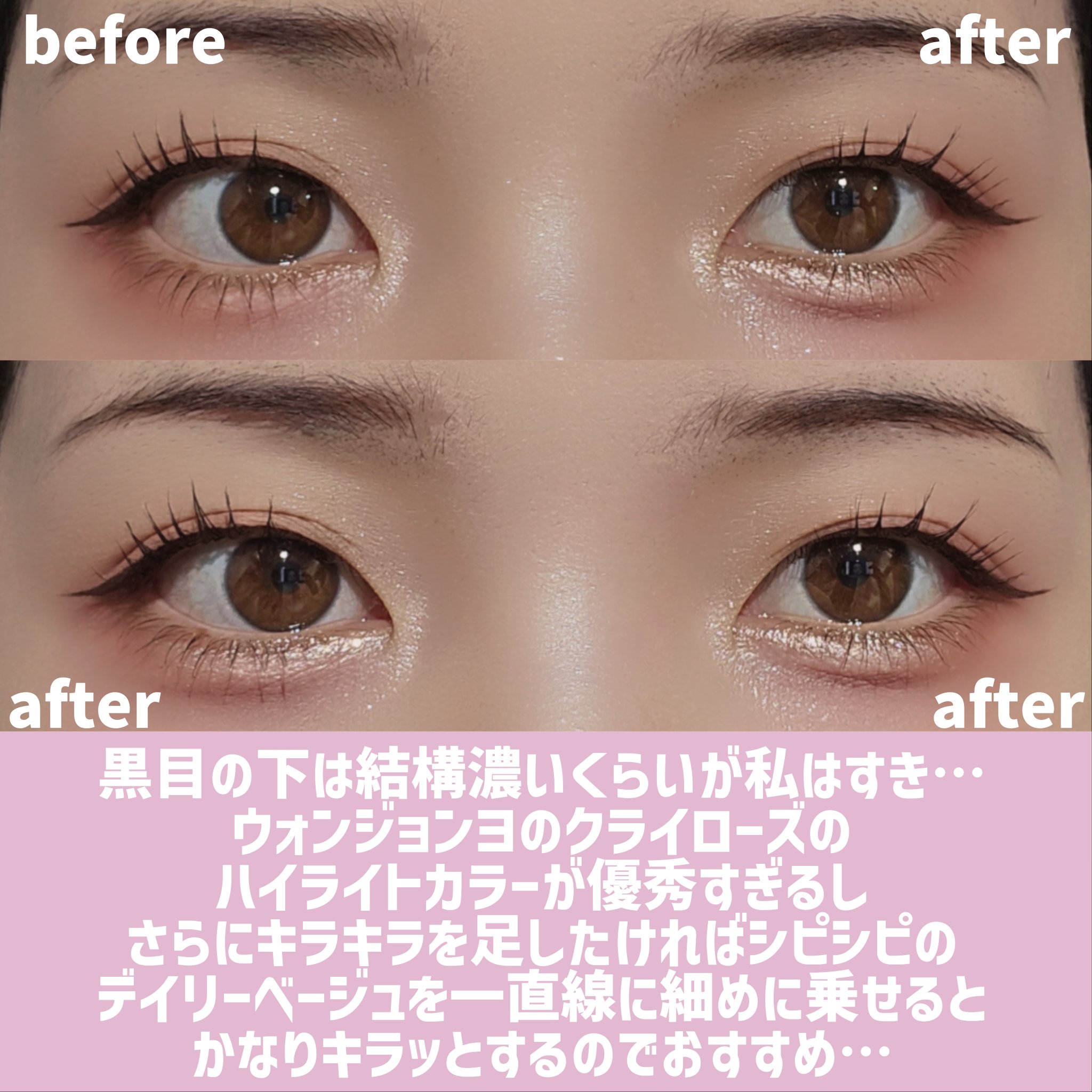 全体のローズ感と粉質もたまらなくいいんですが 左下のハイライトカラー?パールの粉が すんごい涙袋にいいんですよ… パーンとめちゃくちゃ涙袋盛れるけど、 ほんのりピンクがかった白みベージュなので 平成ギャルみたいになるわけではない…と思う ほんとこのハイライトカラーが涙袋に良すぎて いつかここだけ底見えする説…