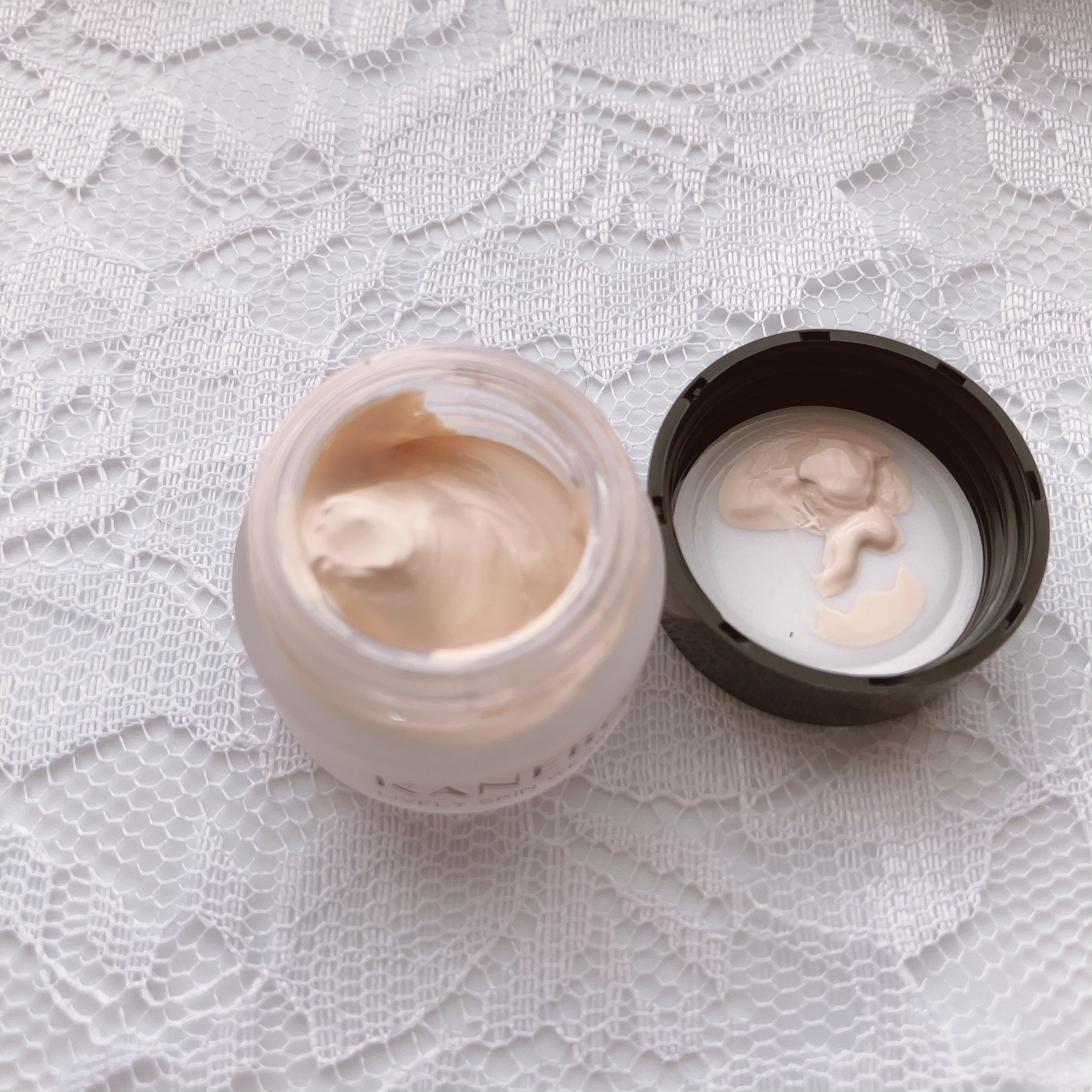 さらさらで伸びが良いテクスチャー。 肌への密着感もあって、ピンクベージュの色みが毛穴のカバーとほんんのりトーンアップも。 クリームのようなテクスチャー。 肌にのせすぎると白っぽくなるので、少しずつ伸ばすのが◎ なめらかテクスチャー。 細かいパールが入ってますが、ギラギラしたりもなく自然な感じ。