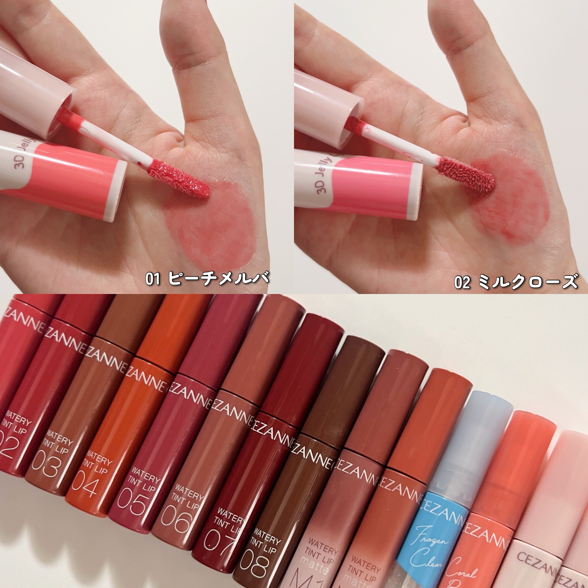 CEZANNEのウォータリーティントリップから新色が出た〜(*˘︶˘*).。.:*♡ということで全色スウォッチいってみたいと思います🙌🏻💕濡れたようなツヤが長時間持続するティントルージュ。水に濡れたような軽やかなツヤが持続✨唇に色がフィットし...